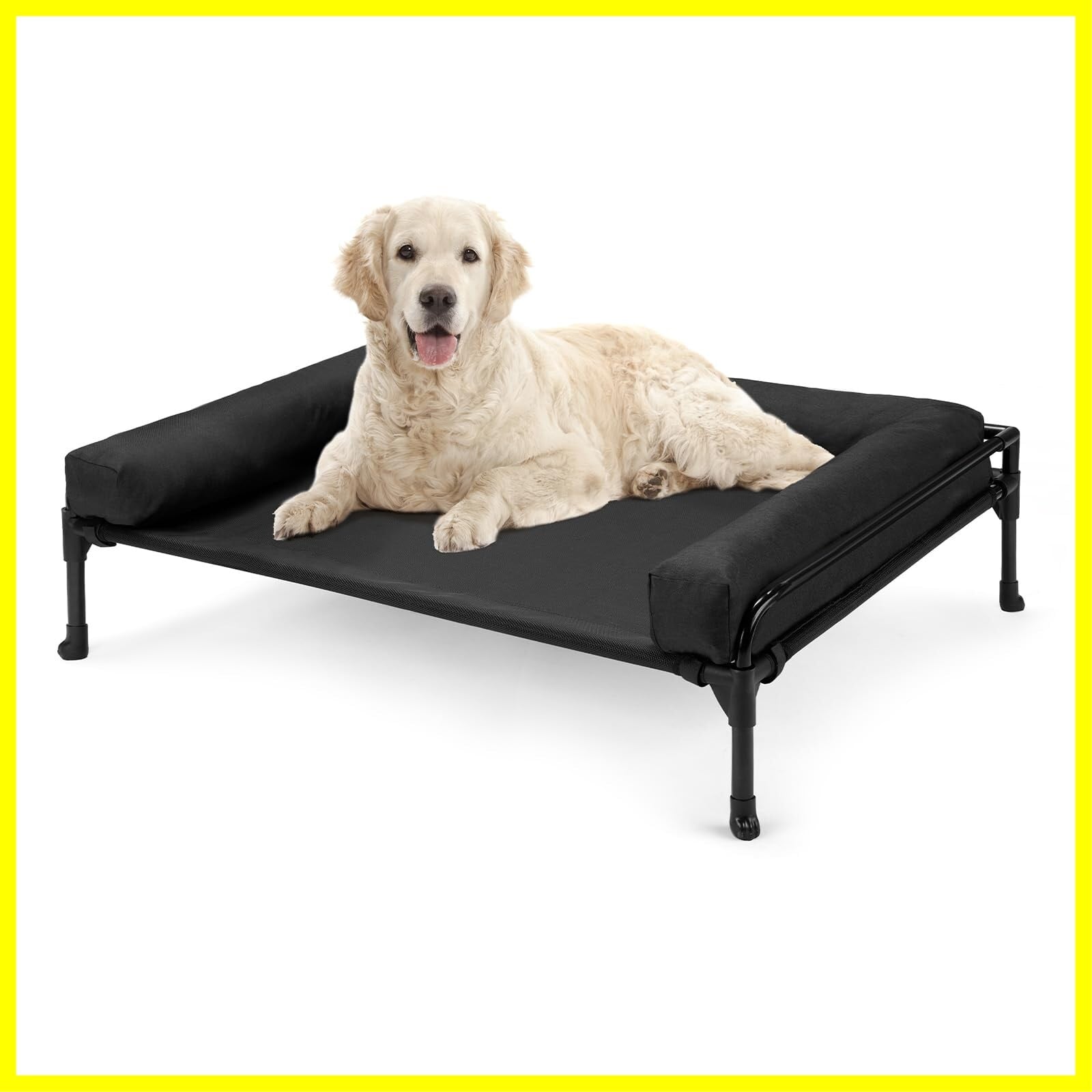 Veehoo 犬 ベッドペットベッド高床式犬用ベッド、大型犬用ベッド犬用コットベッド 3面フェンス付き洗える通気性メッシュのポータブル高床式ペットコット、滑り止め脚、屋外犬用ベッド屋内外で使用犬用コットベッド犬ベッド、89*56 cm ブラック