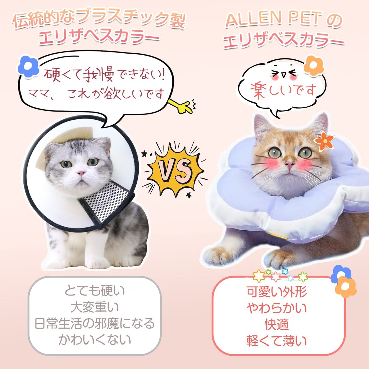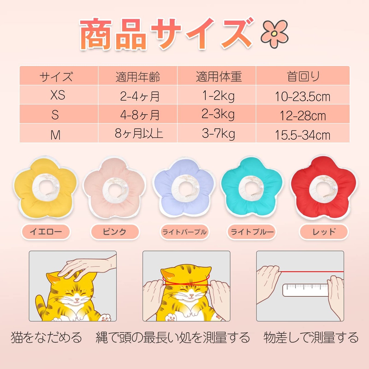 【ご注意】購入する前に正しいサイズを選んでください。フィットしたエリザベスカラーは、猫や犬にとってより効果的で快適です。測定:首周りと首から鼻までの寸法を測定する必要があります。*ご注意:エリザベスカラーを着けるときは、人間の指が1~2本入るくらいのゆとりを持たせます。測定したサイズ+2~4cmがちょうどいいサイズになるので、サイズ表を参考にして選んでみましょう。