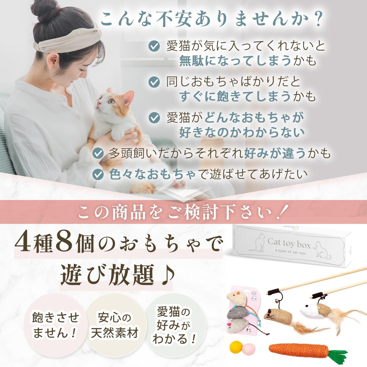 Bicieeel 猫 玩具 おもちゃ 人気 4種8個セット 飽きさせない 長く遊べる 猫じゃらし ボール ネズミ ぬいぐるみ 人参 運動不足 ストレス解消 ギフト