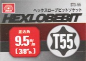 SK11(エスケー11) ヘックスローブビットソケット 差込角 9.5mm (3/8インチ) T55 ST3-55