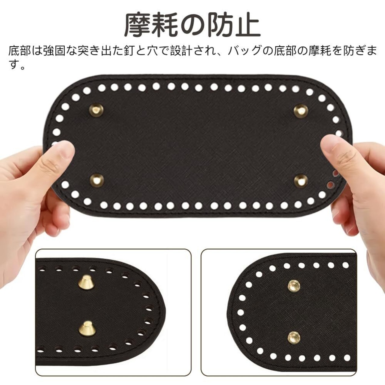KDSSYFT バッグ底板 4枚セット バッグボトム 底釘付 レザー底 ハンドメイド DIY レザークラフト 財布 編みバッグ 手芸用トート バッグ用 素材 (楕円4個入り,黒色)