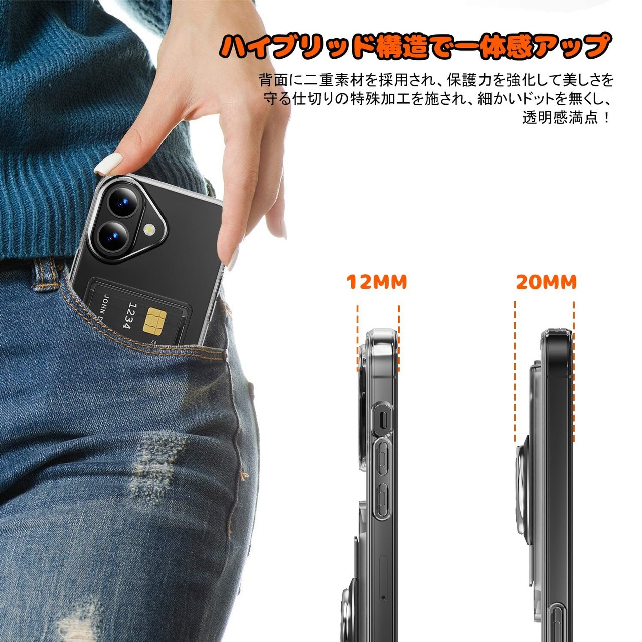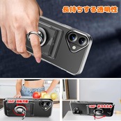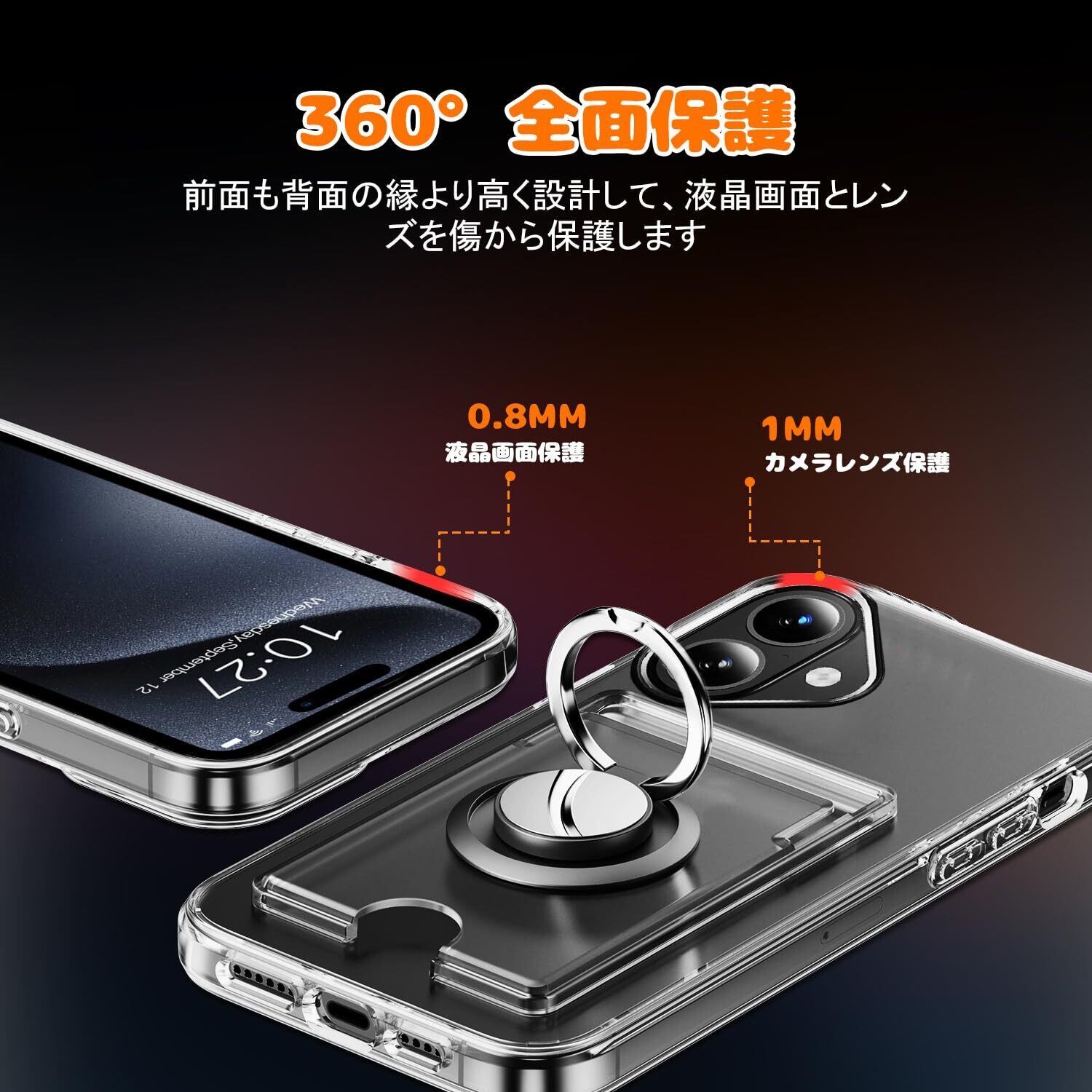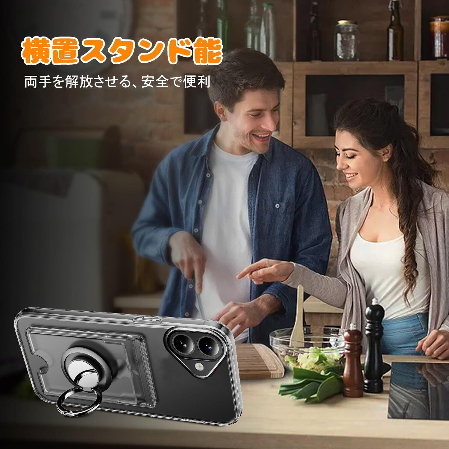 対応 iPhone 16 ケース 透明 カード収納 リング付き 耐衝撃 保護カバー アイフォン16 スマホケース クリア シリコン スタンド機能 耐久 滑り止め (クリア)