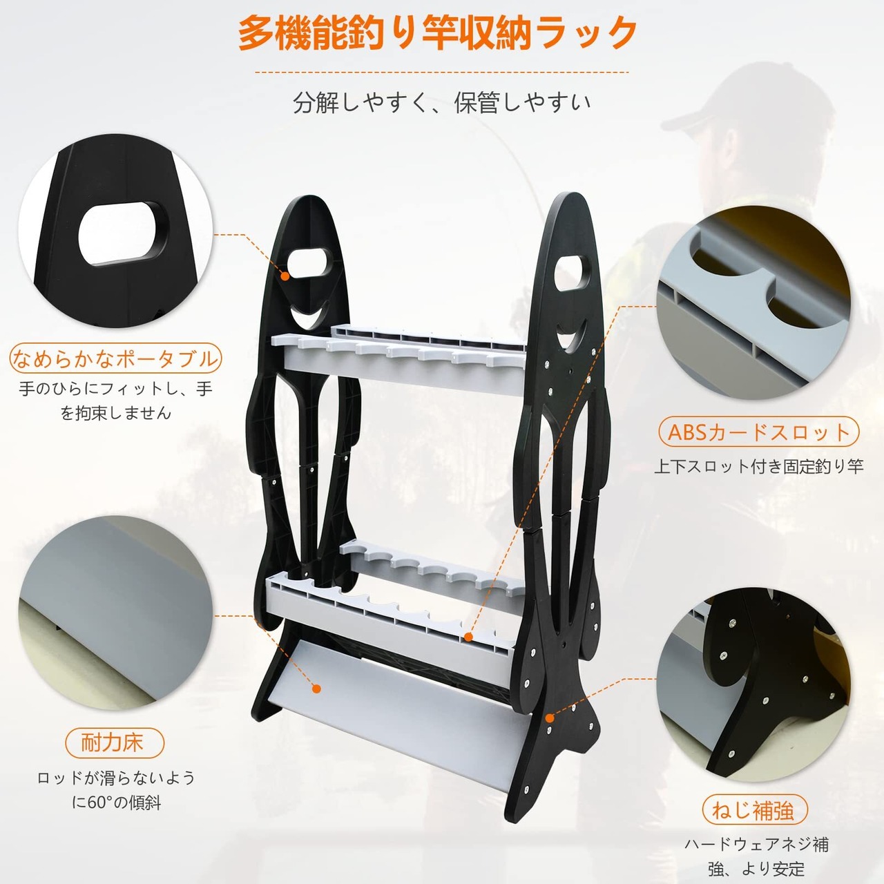 BQKOZFIN ロッドスタンド 16本 釣り竿用 釣り竿ラック ポール マウントラック インストールロッドホルダー 組立式 フィッシング ロッド