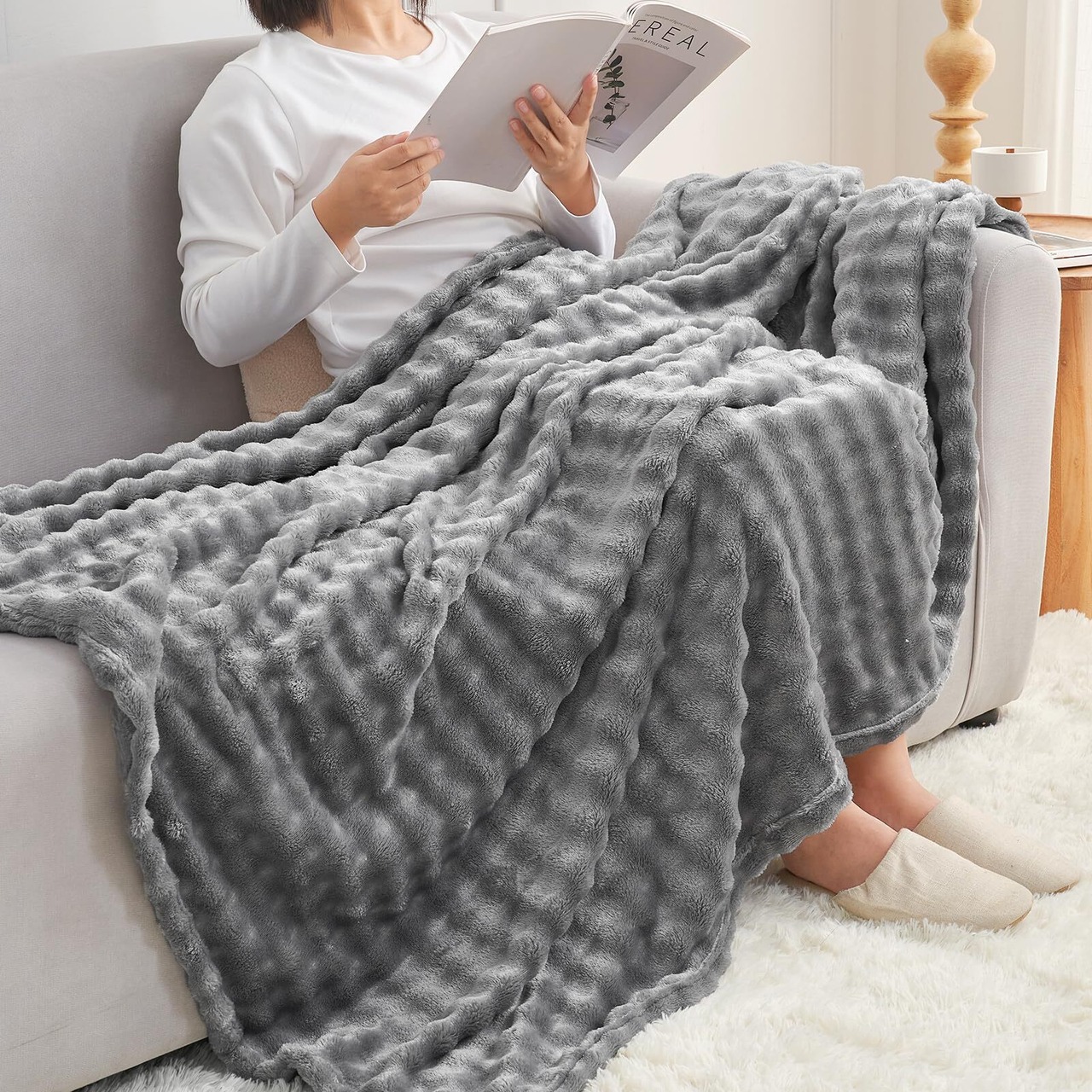 Hansleep 毛布 もうふ ひざ掛け 冬用 暖かい 膝掛け ブランケット 柔らかい ふわふわ ハーフケット 洗える 静電防止 もこもこ 四季適用 (70x100,グレー)