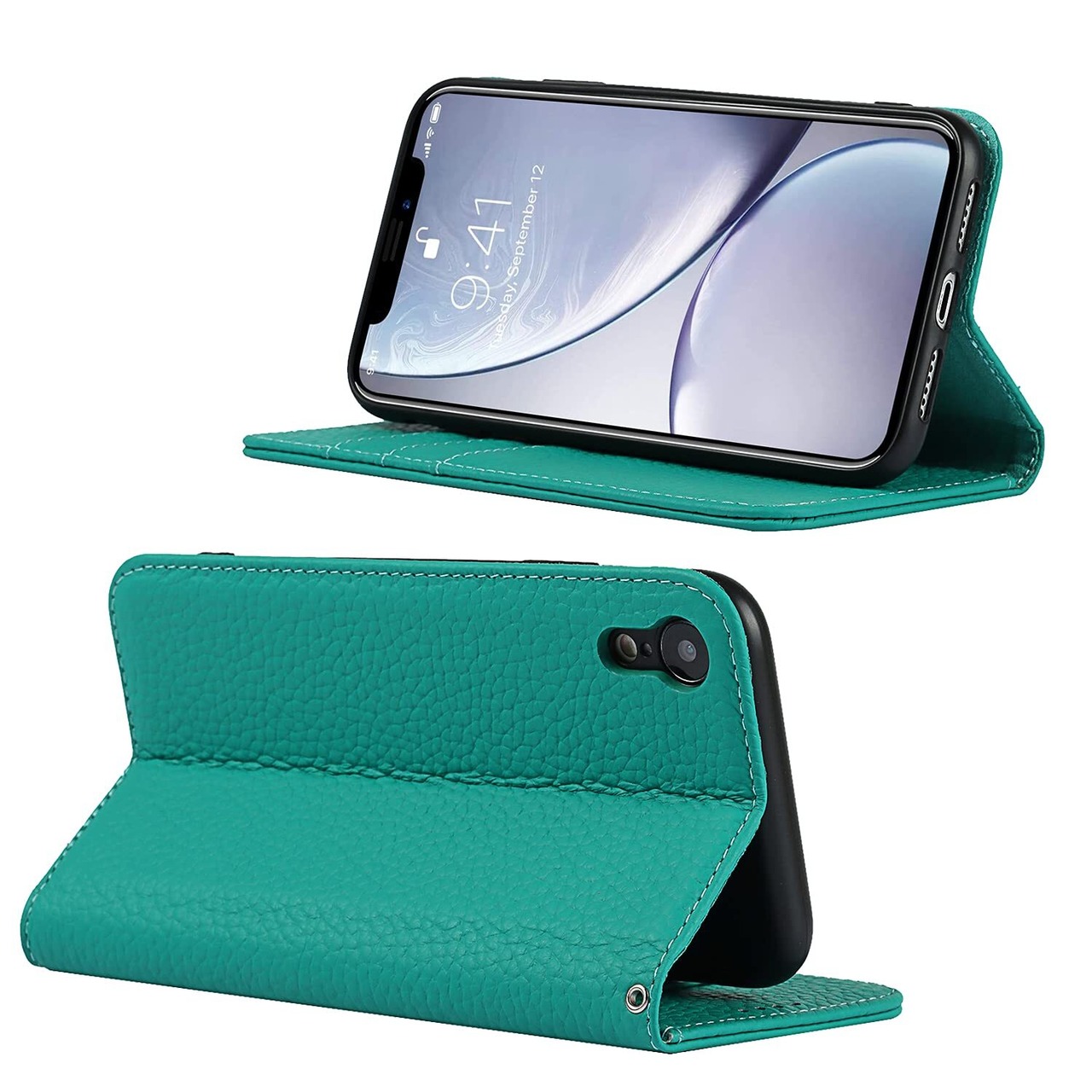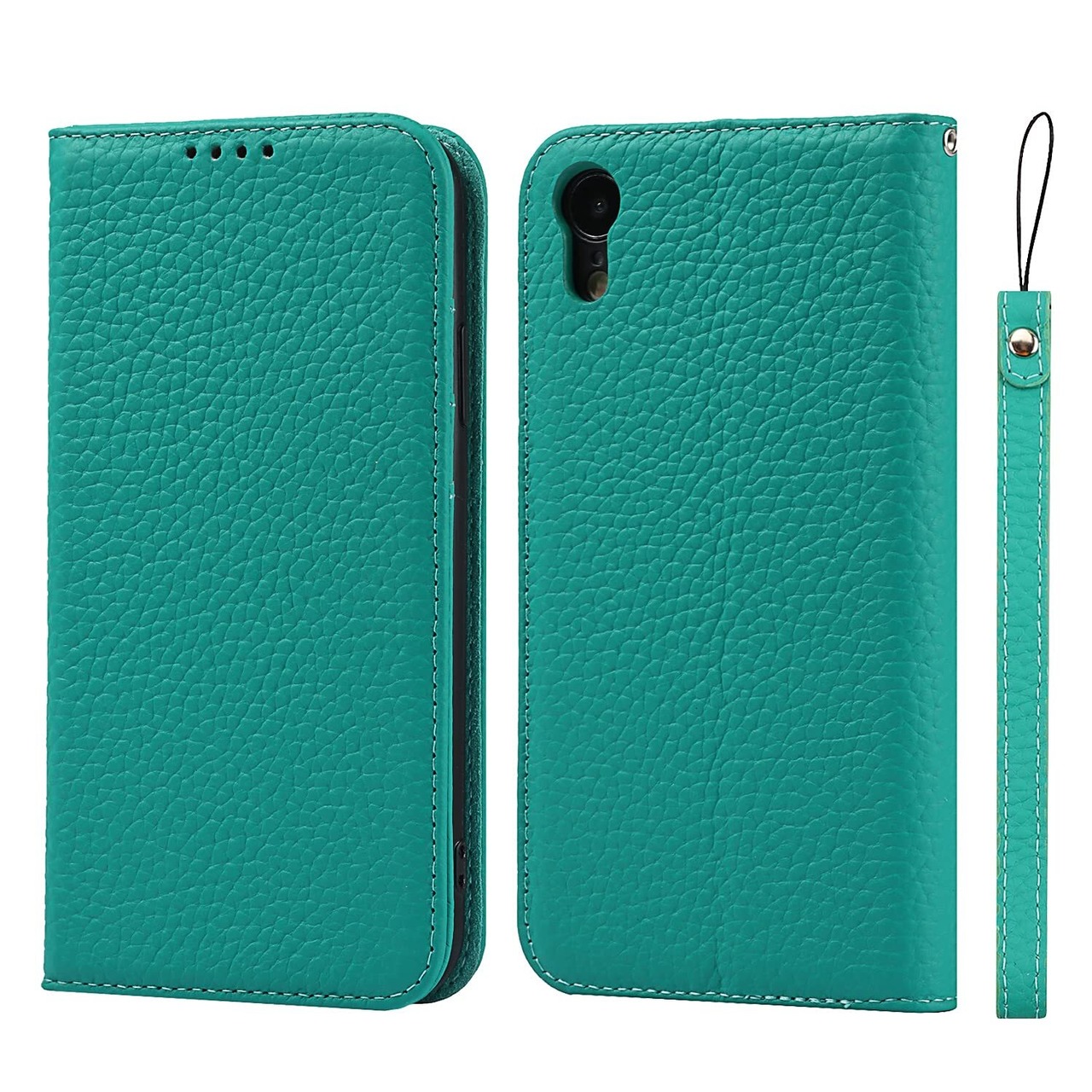アイフォン for iPhone XR ケース 牛革 本革 手帳型 for iPhoneXR 財布型カバー 本革 手帳型 携帯スマホカバー 人気 おしゃれ 内蔵マグネット 耐汚れ 耐衝撃 カード収納 軽量 人気 -グリーン