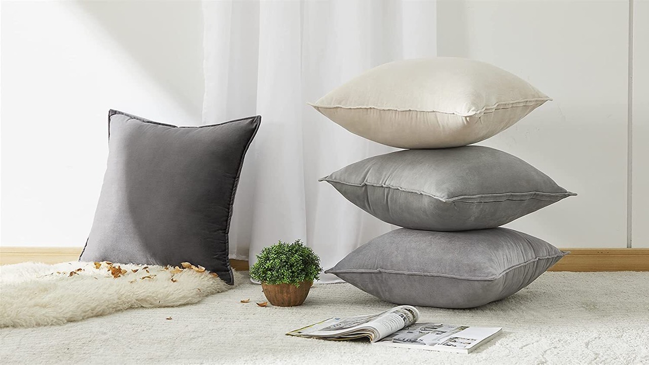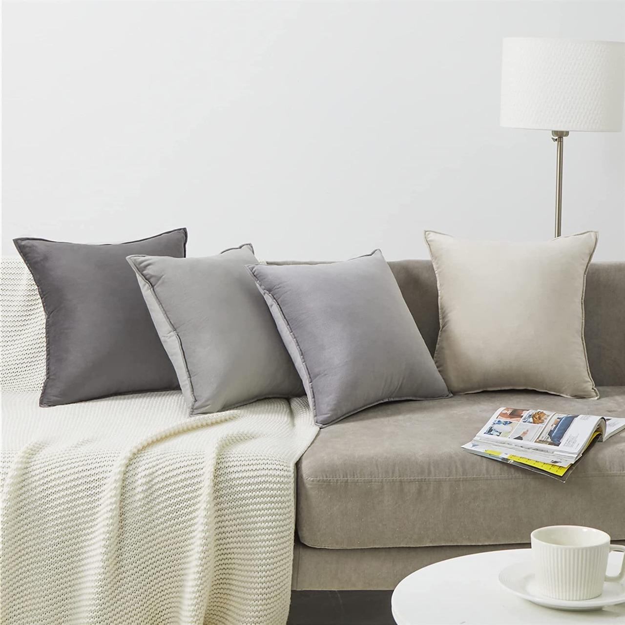 Topfinel クッションカバー 60×60cm 4枚セット グラデーション おしゃれ 北欧 ベルベット 洗える 無地 グレー