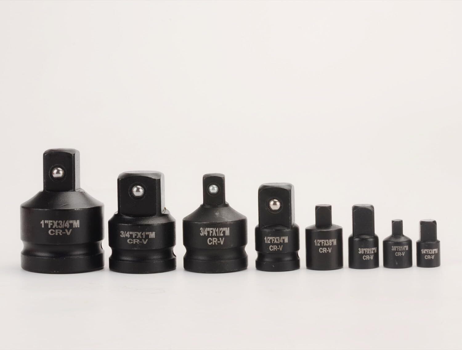 自動車・バイク・トラック整備に使用する5規格【1"(25.4mm)、1/4"(6.35mm)、3/8"(9.5mm)、1/2"(12.7mm)、3/4"(19mm)】のインパクト用ソケット変換アダプターとなります。インパクトレンチのサポート工具。