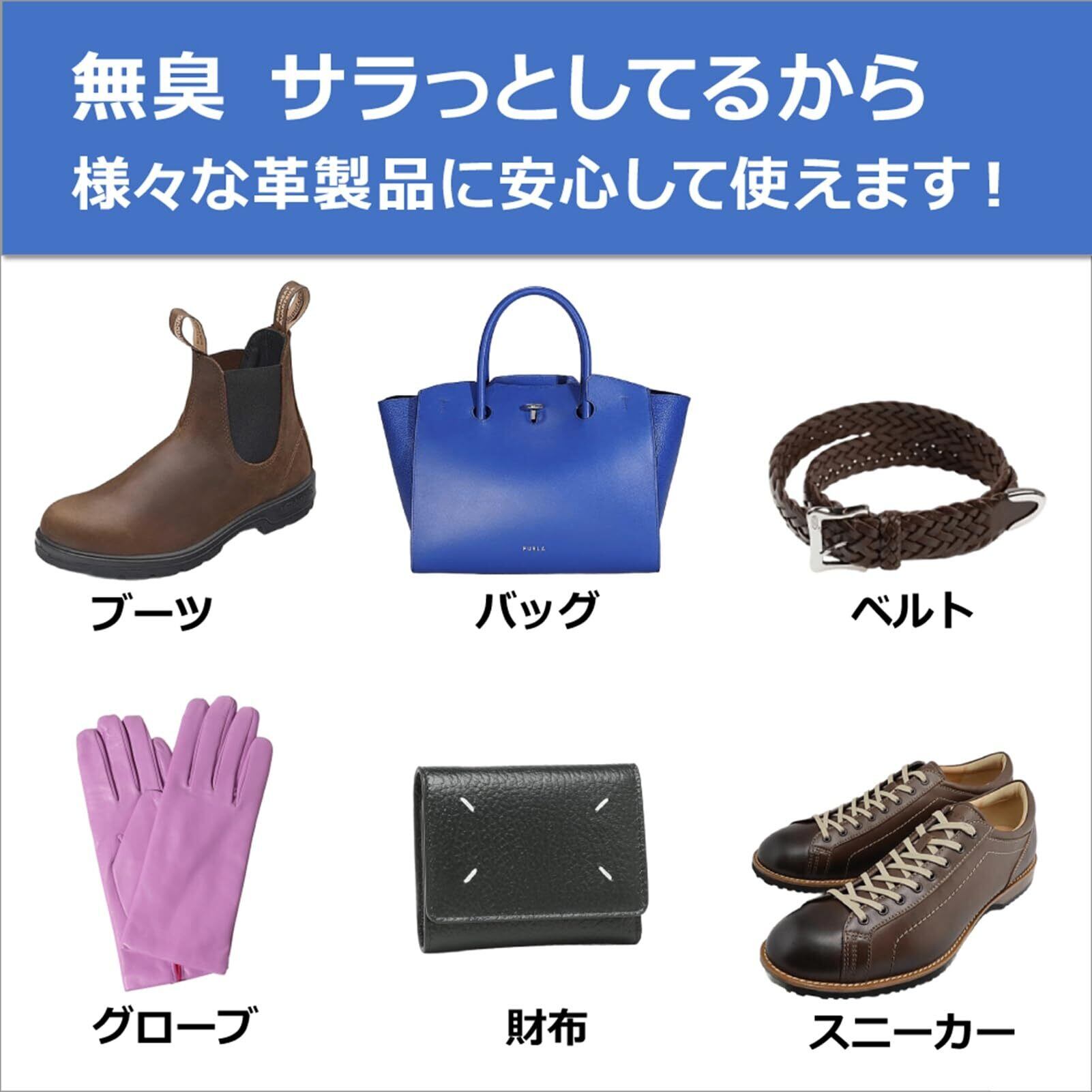 使いやすい無臭タイプなので、革ジャケットやグローブなど身に着けるレザーアイテムにも安心して使用できます。