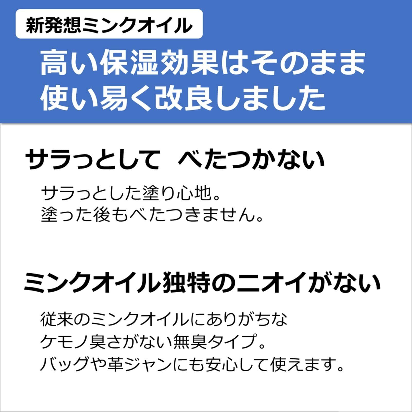 ミンクオイルの栄養効果とワセリンの保湿効果で、革製品をしっとり柔らかくし、防水効果も与えます。