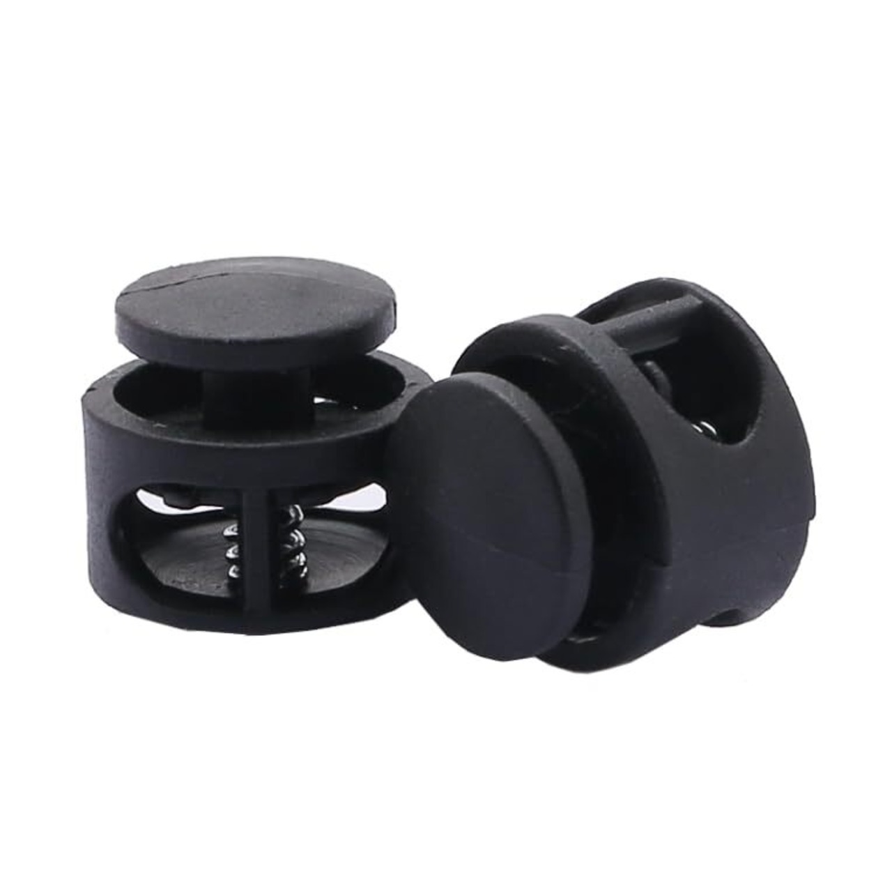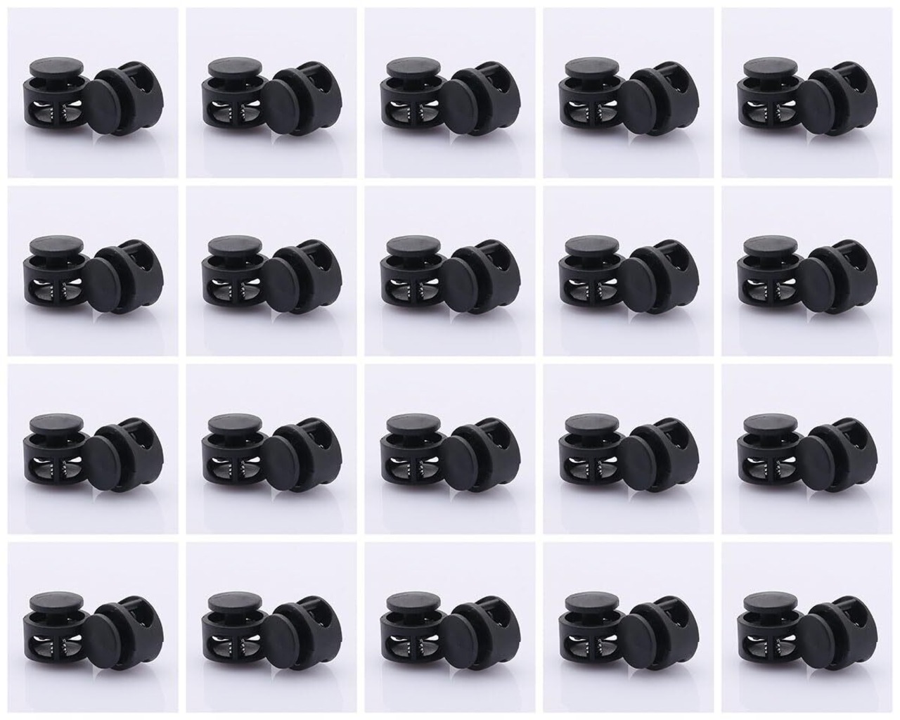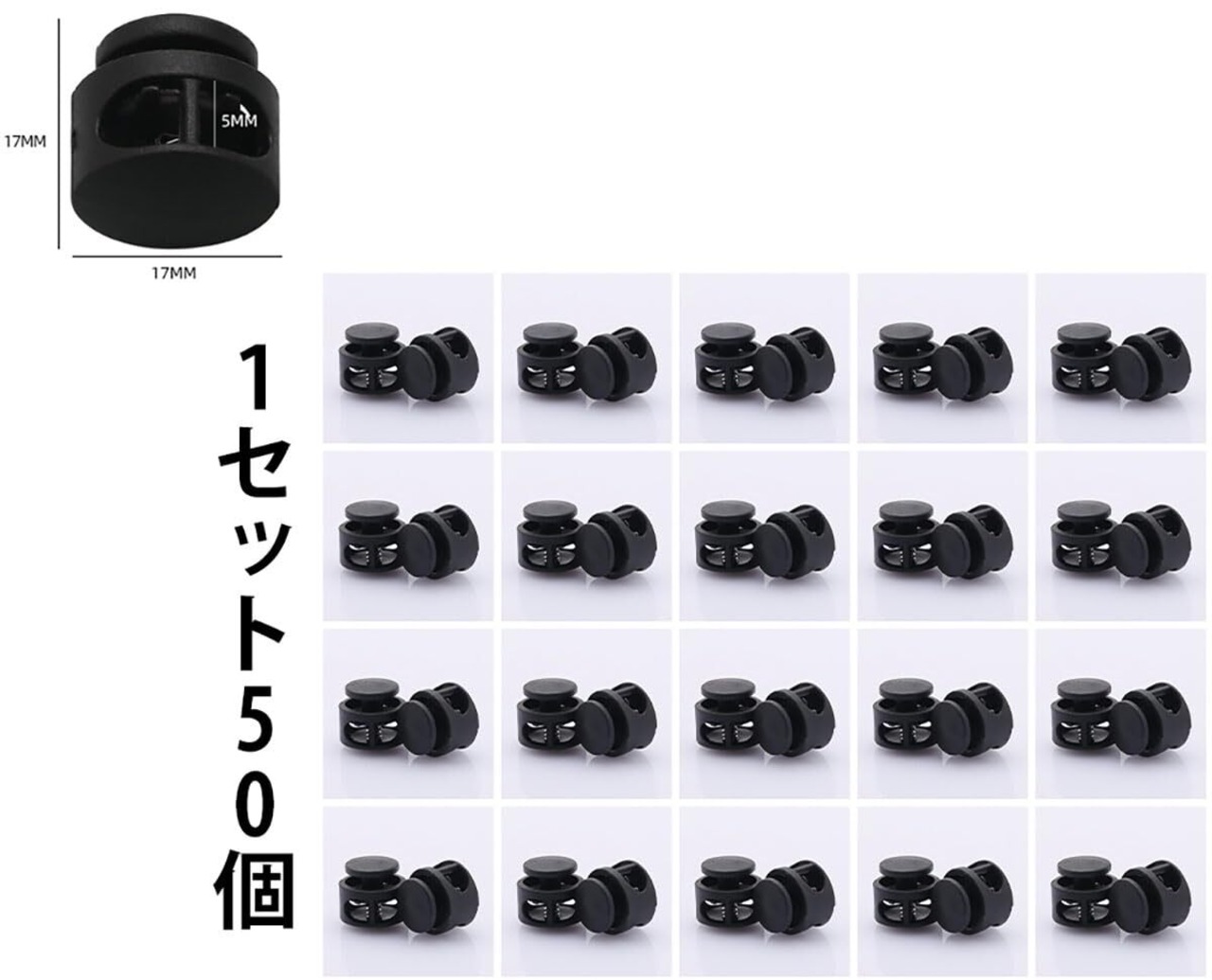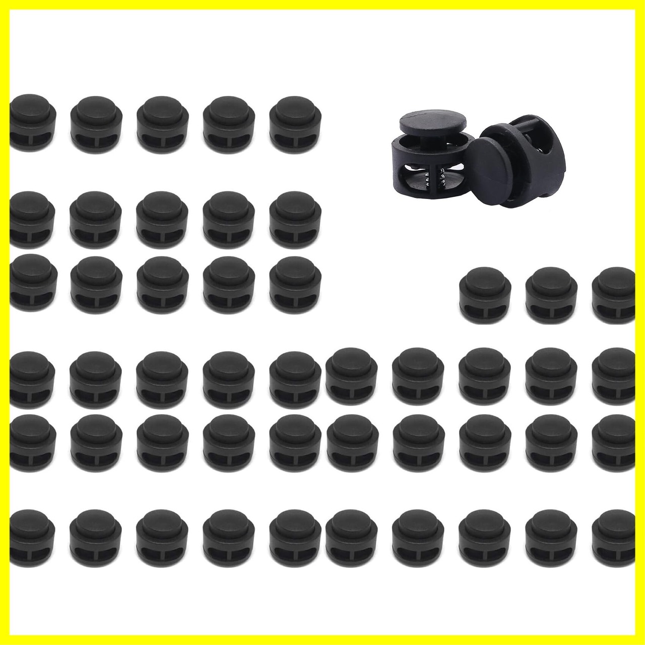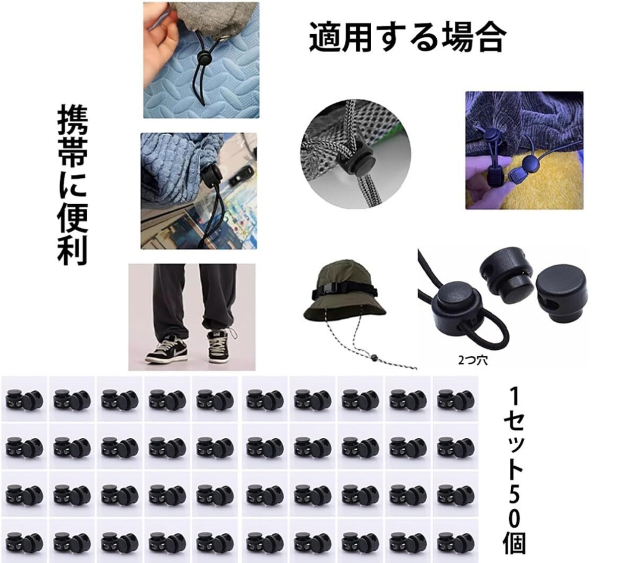 [LeTradeJP] コードストッパー 2穴 (50個入り) コードロック スプリング プラスチック シューレースストッパー紐止 紐止め ゴム調整 靴紐 衣類 帽子 靴ひも 交換/補修用 留め具 DIY 手作り 素材 (ブラック)
