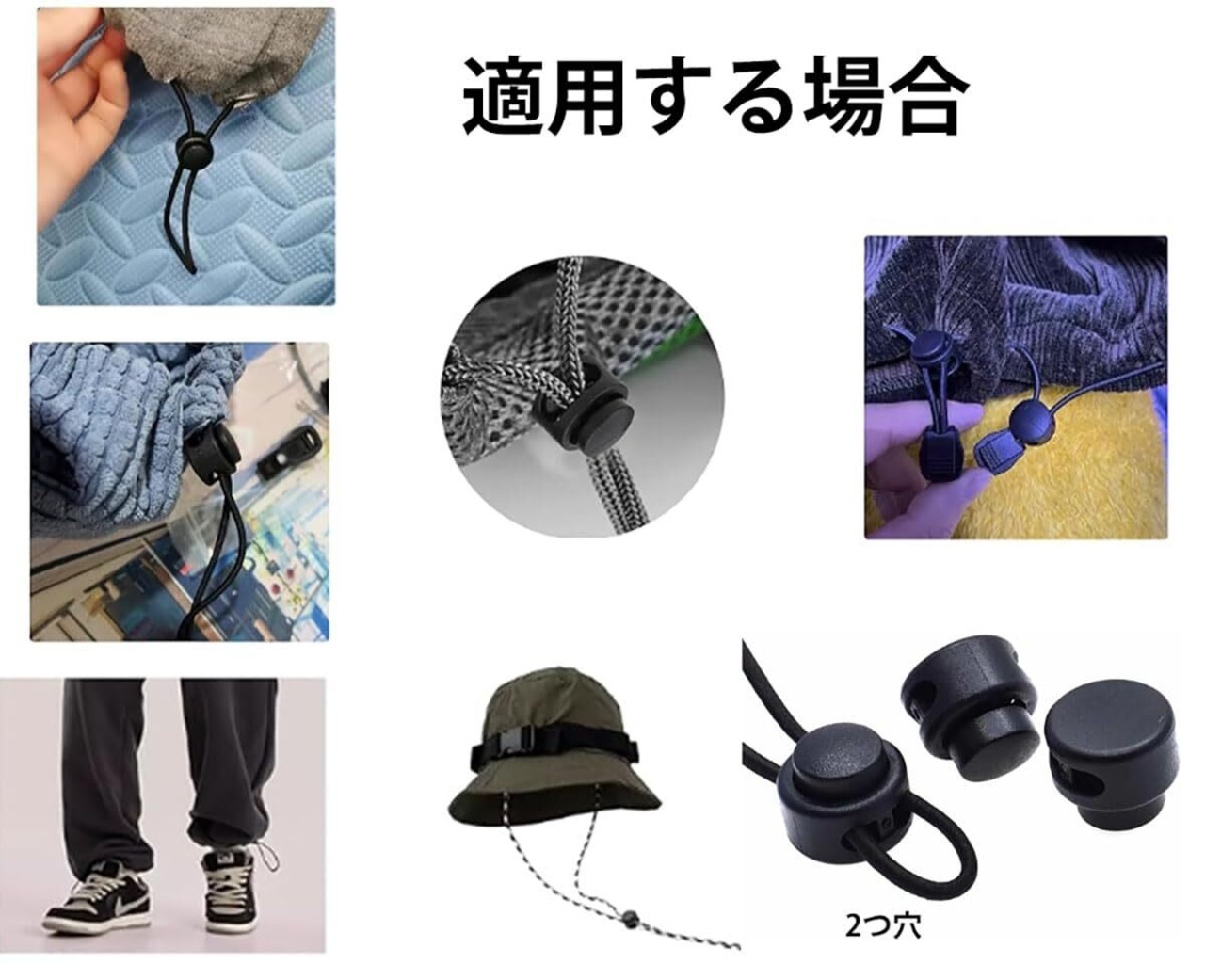 【多様な用途に適した】様々な場面で、紐の締め付け、リュックのブレーキ、ウエストゴムの紐掛け、巾着袋、帽子の紐掛けの開閉補助具などを使用することができる。バッグ、リュックサック、スポーツウェア、リュックサック、衣類など幅広い用途で使用されています。
