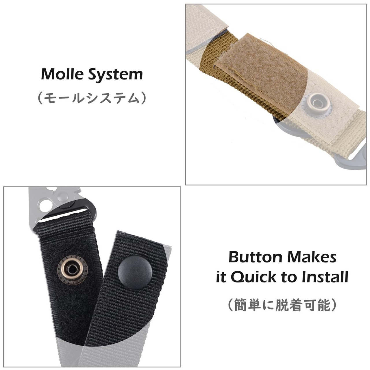 【MOLLE対応】- ベルトホルダー搭載なので様々な幅のベルトに装着する事ができます。MOLLE対応のバッグやサバゲーベスト等にも装着可能です。