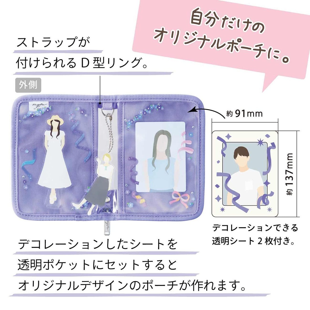 デコレーションしたシートを透明ポケットにセットするとオリジナルデザインのポーチが作れます。持ち運びに便利。