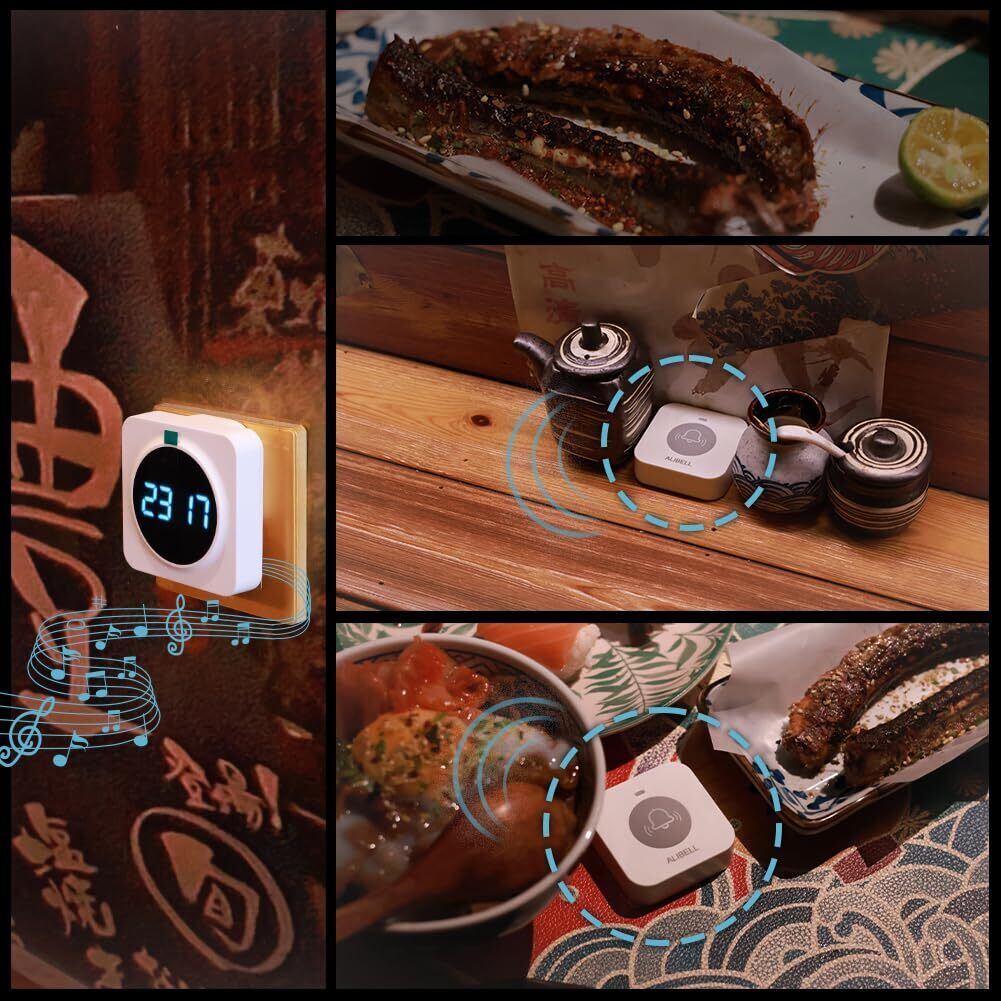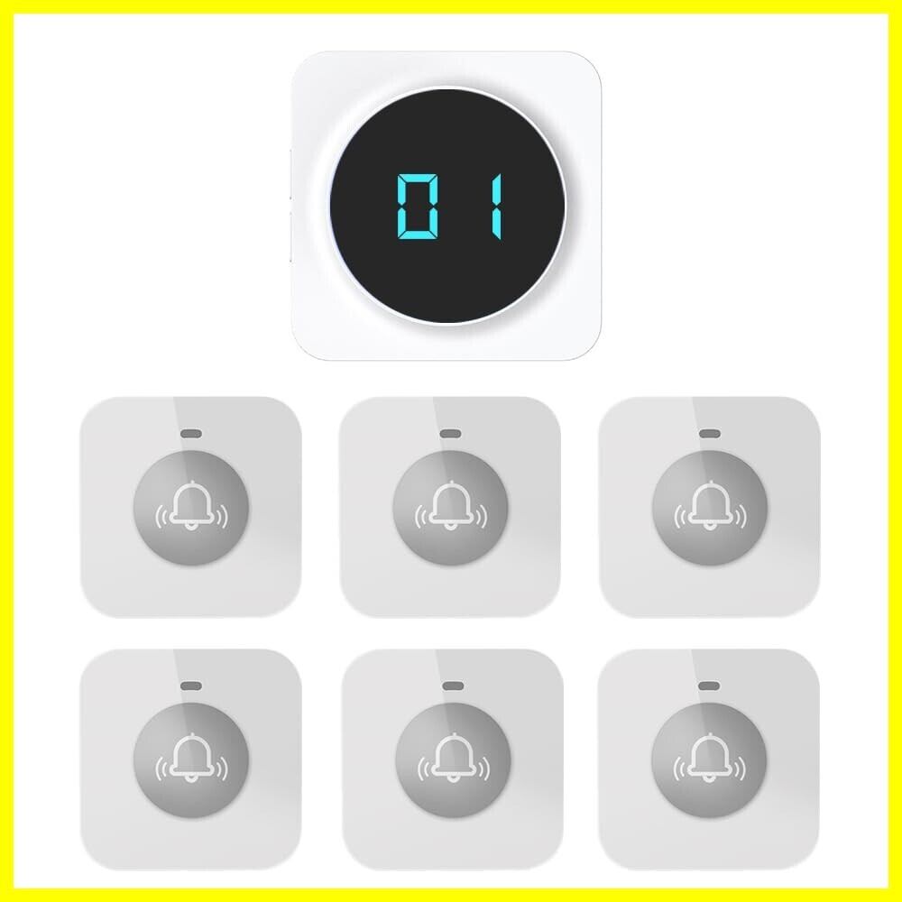 ALIBELL 業務用呼び出しベル 呼び出しベル 飲食店 呼び鈴 ワイヤレス 介護呼び出しベル 無線呼び出しチャイム ワイヤレスチャイム スタッフ呼び出しベル(受信機*1+子機*6)