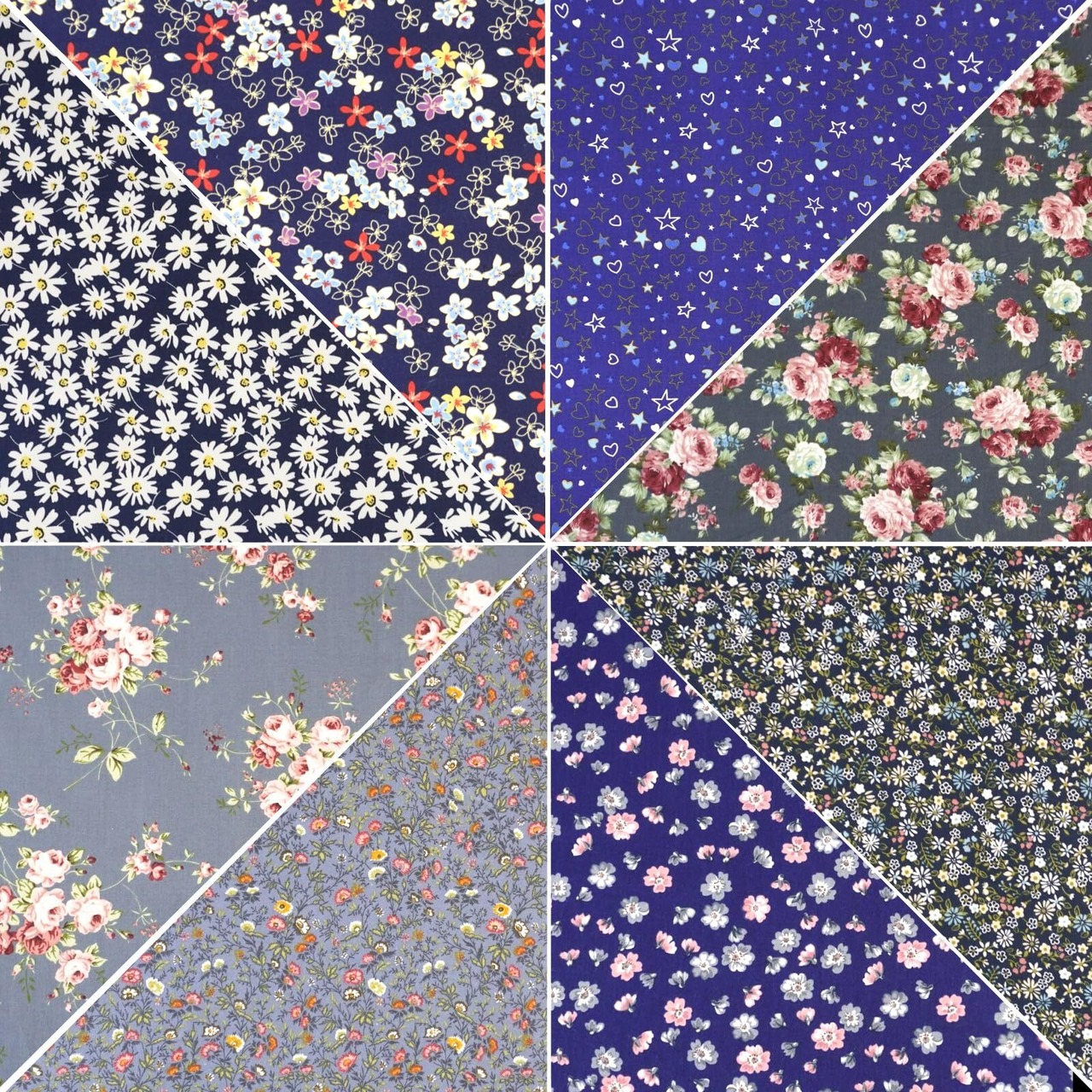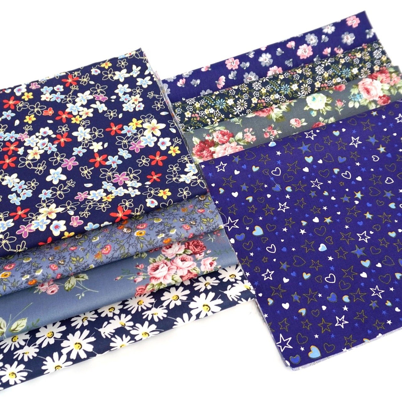 8枚 生地 キルティング 棉100% はぎれ 手芸 パッチワーク用 かわいい 46x56cm カットクロス 布 セット (ダークブルー 菊)