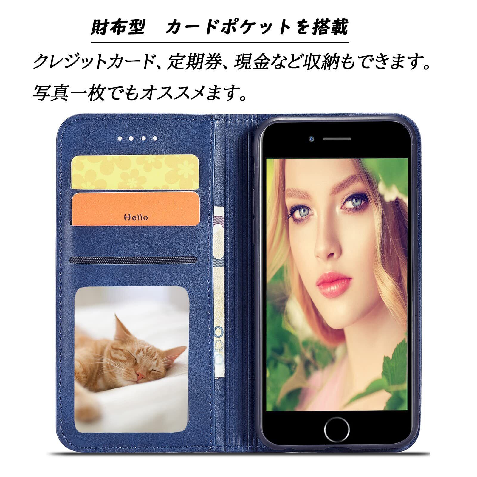 iPhone SE ケース 第3世代 手帳型 スマホケース se3 カバー iPhone7/8/SE2020/SE2022 4.7インチ対応 ブルー