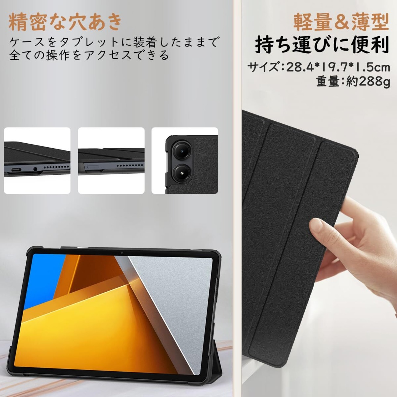 「対応機種」 Xiaomiから2024年発売のPOCOブランドの「POCO Pad」タブレットに対応できる手帳式の保護ケースです。Redmi Pad Proも対応できます。薄型かつ軽量化にした設計で、取り扱いやすくピッタリフィットできる見栄えも保護力も両立させたスマートケースです。ご購入になる前に、機種をしっかりと確認してください。