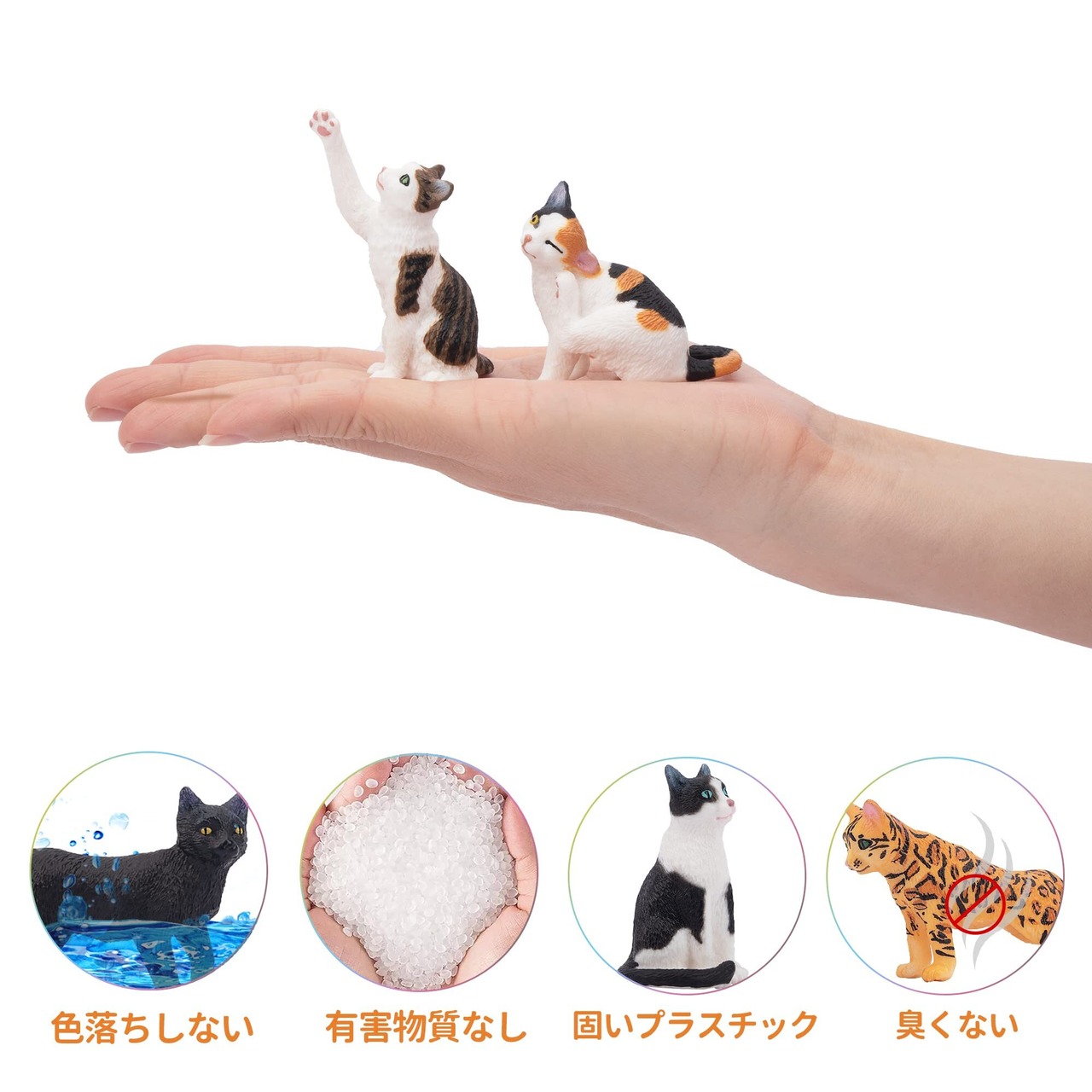 魅力的な猫フィギュア:猫フィギュアので、DIY装飾、オフィス・パーティー・植物の飾りに最適です。人に誕生日、クリスマス、こどもの日、新年のお祝いのプレゼントとして適します。家やパーティーで楽しい時間を過ごすことができます。動物模型を収集することが好きな人にもよい選択です。