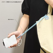 コイル部分を手首に通してブレスレットのようにスマホ保持のサポートとして使用したり、先端のカラビナを外してカバン等に繋げることも可能です。