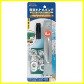 セット内容:両面ハトメパンチ本体×1個、ハトメ玉/12mm・#28×10組、下穴ポンチ×12mm、下敷き×1枚