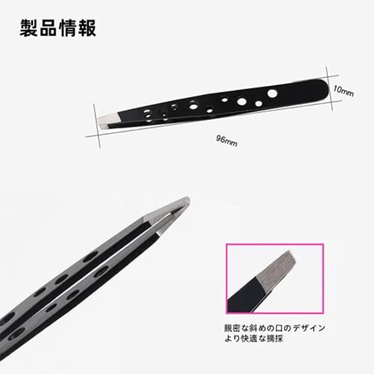 Baconbb 毛抜き 眉毛 毛抜 とげぬき 眉毛抜き 斜め ひげ 先斜めタイプ (ブラック) 精密ピンセット毛抜き まゆ毛 手芸
