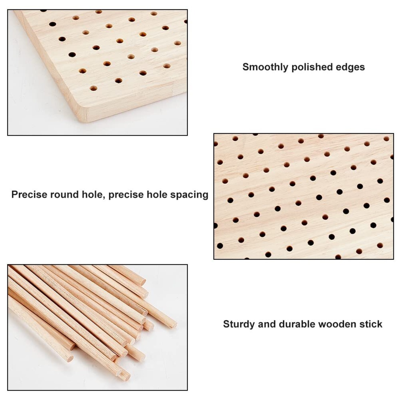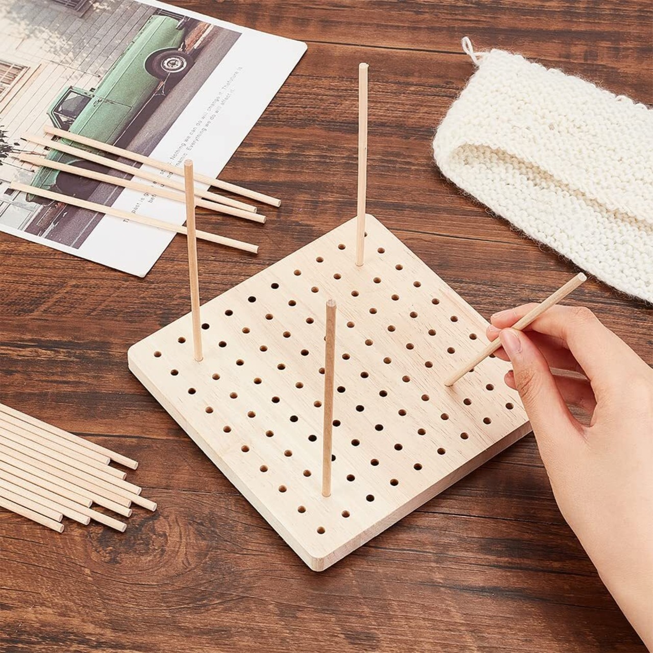 BENECREAT 1セット 木製ブロッキングボード 16×16cm かぎ針編みブロッキングボード 100穴 木の棒20本付き 編み物用ブロッキングボード かぎ針編み愛好家向け 裁縫編み用 初心者 母親 祖母 編み物手作り