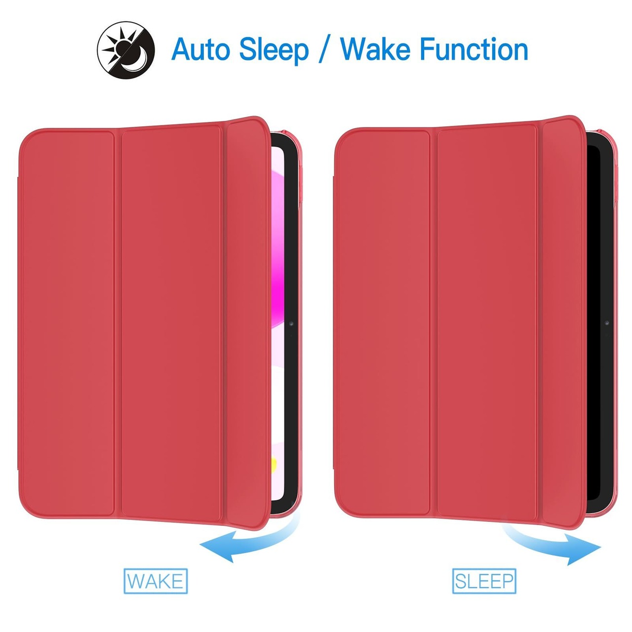 JETech iPad(A16)ケース 第11/10世代(2025/2022モデル)用スリムスタンドハードバック ウェイクアップ/オートスリープ機能付き タブレットカバー (レッド)