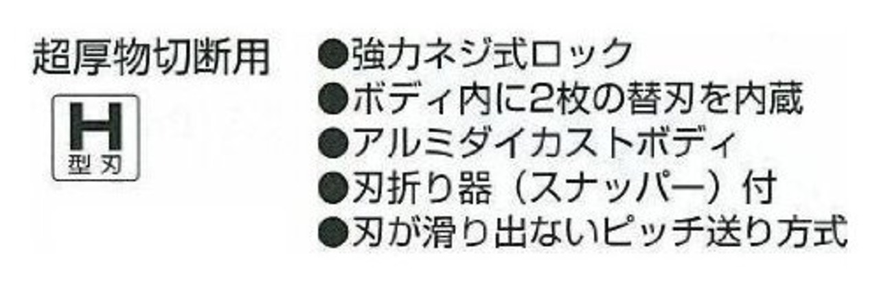 品番:AC-H701S JAN:4975364017253 製品重量(g):237 税込価格(円):4,180 税抜価格(円):3,800 品番:AC-H701S 税込価格(円):4,180 税抜価格(円):3,800 替刃タイプ:H型替刃(0.7mm厚×25mm幅) ネジロック式 替刃2枚内蔵 本体:アルミダイカスト
