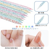多機能両端のデザイン、ネイルアートスティックには、面取りされた端と尖った端があり、尖った端はネイルの外側をきれいにするのに使え、平らな端は、爪をきれいにしたりキューティクルを押し戻すのに適しています。