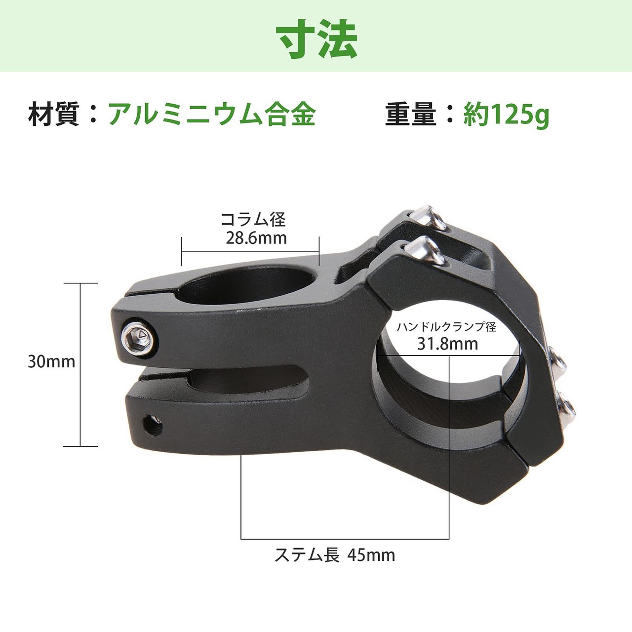 【サイズ】ワンポイントファイブ31.8mm(ハンドルクランプ径)、45mm(ステム長さ)【超軽量】ステムハンドルポストの重量はわずか約125グラム、軽量で自分のご愛車に負担をかけない。
