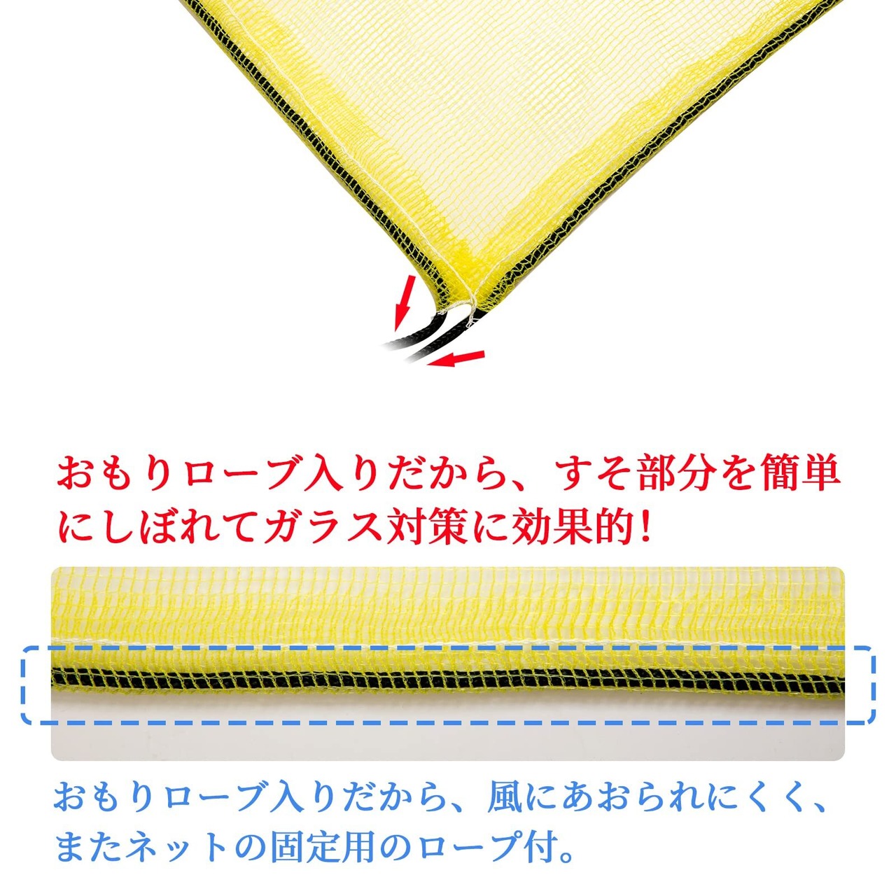 OFFO カラスよけネット ゴミネット 1.5x1.5m 45Lのゴミ袋約4個分の収納力 4mm 細かい網目 カラスよけ おもり入り ロープ付き 設置簡単 風に強い 鳥 カラス 鳩 犬 ネコなどからしっかりガード(イエロー)