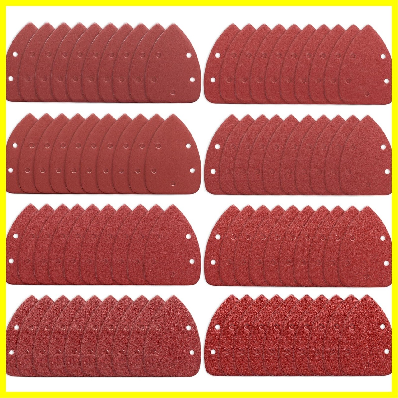 【作業時間を節約】熱処理の技術高品質アルミナミニデルタサンダー用サンドペーパー、研磨性大幅に改善、破れにくく耐久性が非常に高いサンドペーパーです、よく削れます は早い、平面だけでなく隅の研磨もするが、研削効率がアップします コスパ的にはいい商品です