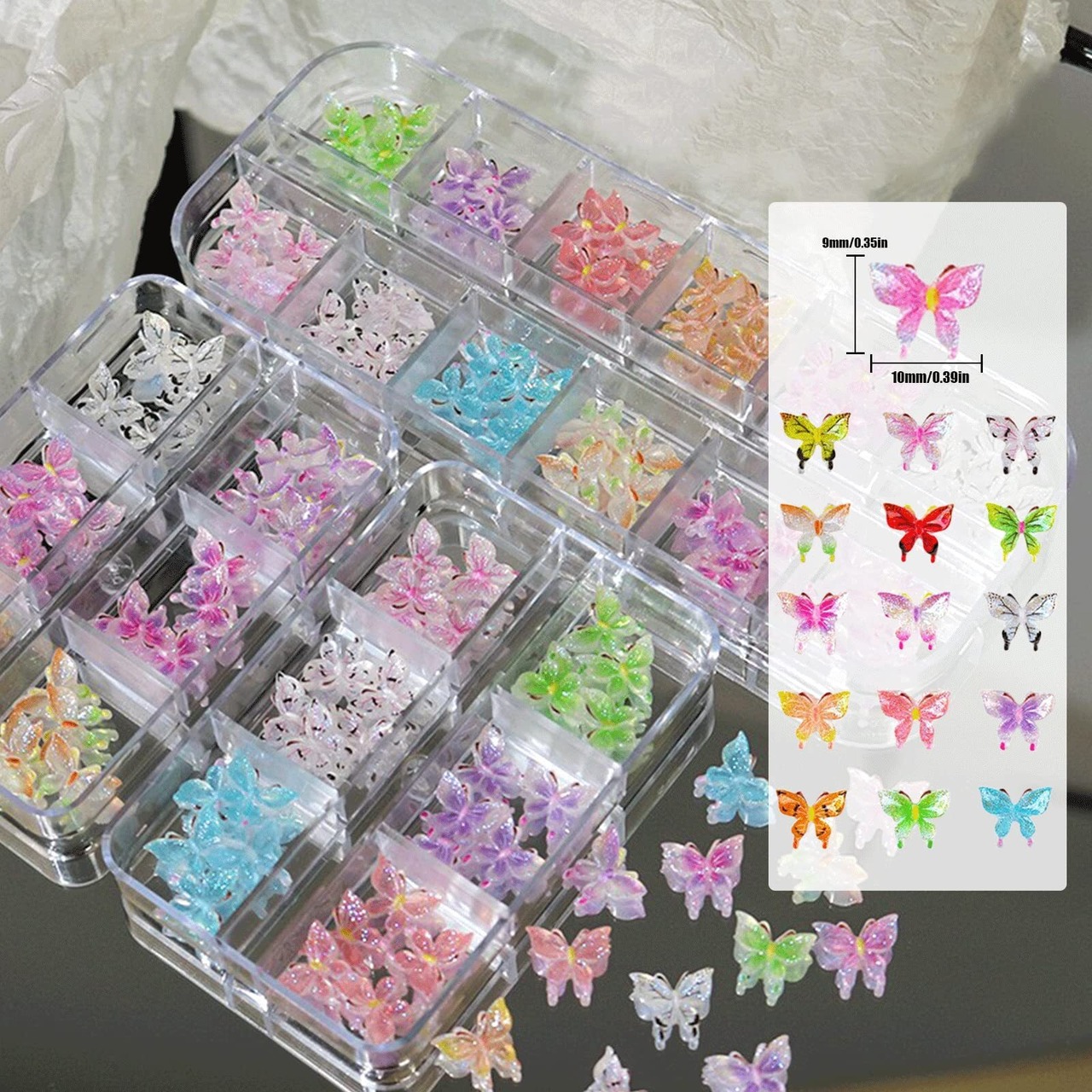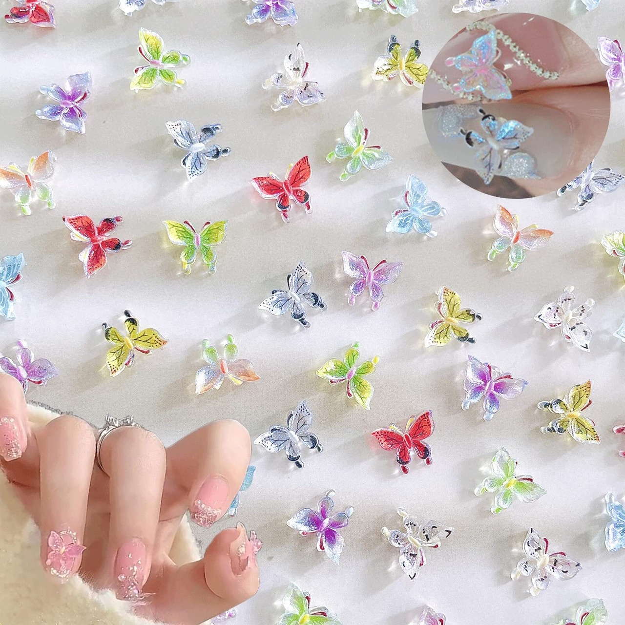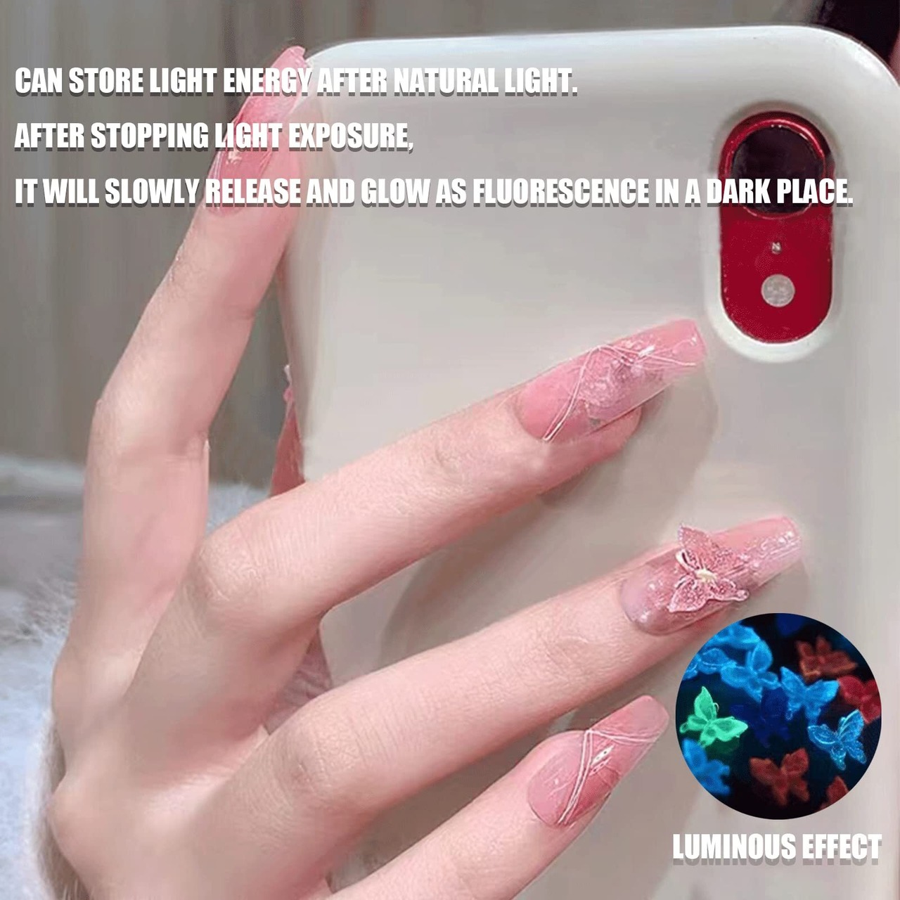 【蝶々ネイルパーツ】夜光の効果がある蝶ネイルパーツです。蝶パーツはカラフルーでおしゃれです。ネイルのワンポイントにぴったりの可愛いパーツになっております。