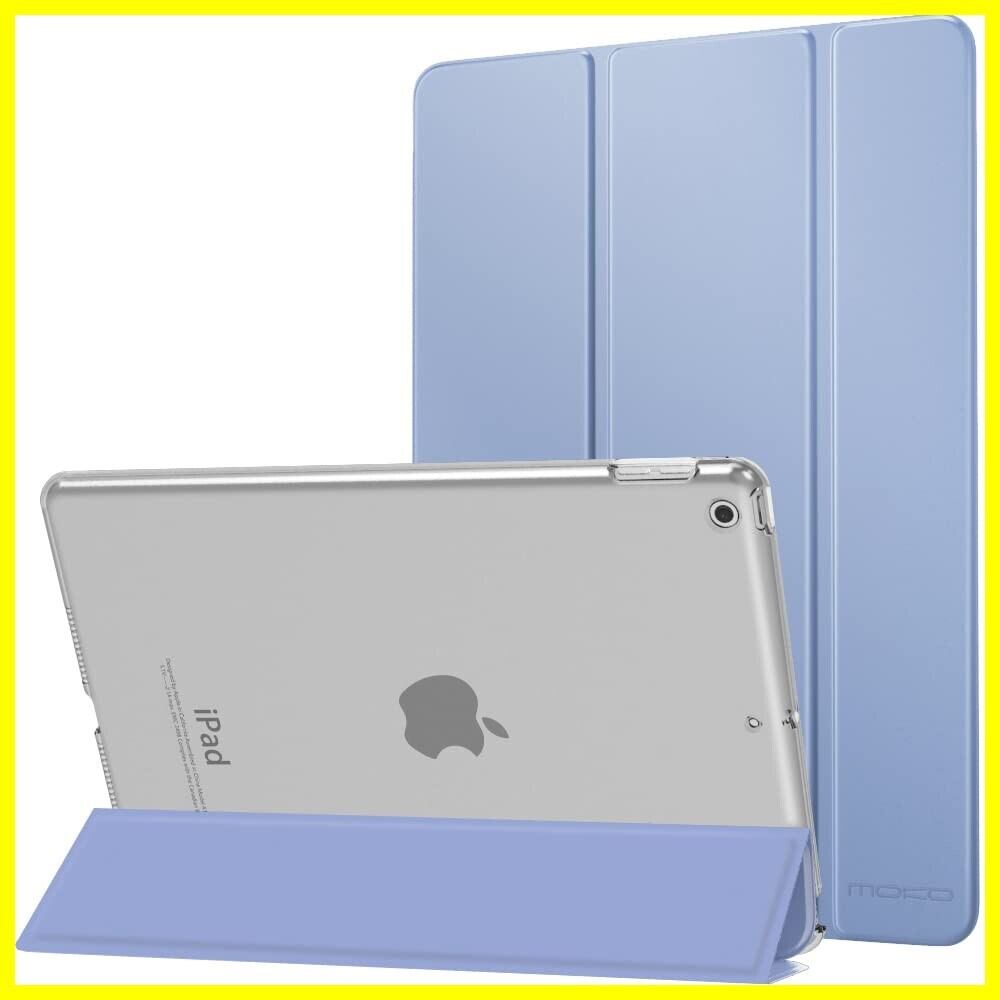iPad 9 ケース 2021 MoKo iPad 10.2 ケース 第9/8/7世代(2021/2020/2019) 半透明 オートスリープ機能 薄型 スタンド 三つ折り 高級PUレザー 裏地マイクロファイバー 傷防止 スマートケース Lavender