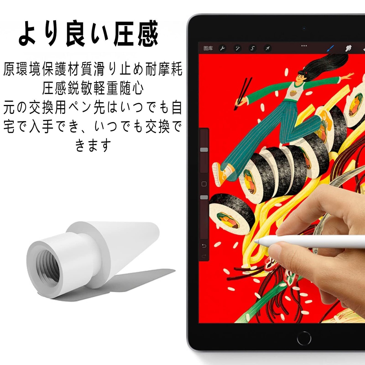 【予備のペン先で安心】ペン先は消耗品です、欠せない予備品です。ペン先が消耗すると、Apple Pencilの使い心地と寿命にもダメージを負ったので、反応が悪くなったり筆圧感知機能が動作しにくくなるなどの影響があります。予備のペン先を用意しておけば安心して使え、Apple Pencilの寿命を延ばすことができます。