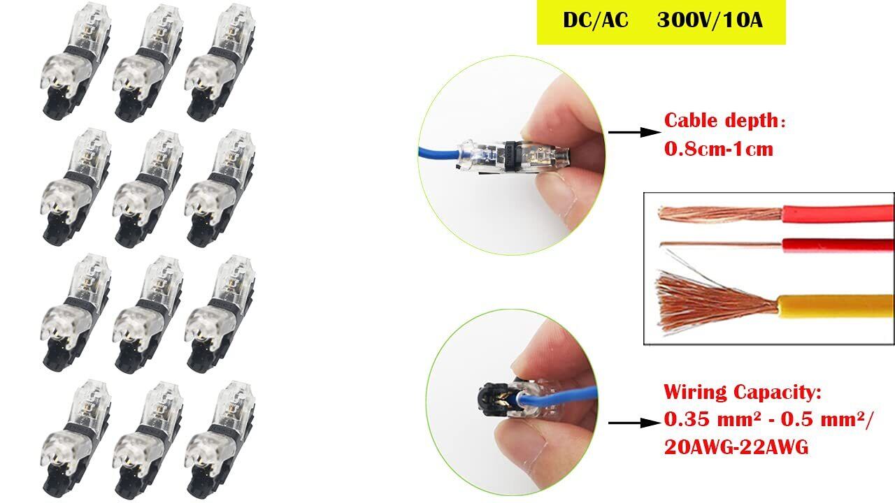 [仕様]:20-22AWG接続、1芯サブワイヤコネクタ、動作電圧:0-36V、動作電流:0-10A、動作温度:-30℃〜+ 85℃(注意:この製品は防湿または防水ではありませんので、清潔で乾燥した環境でのみ使用できます。)