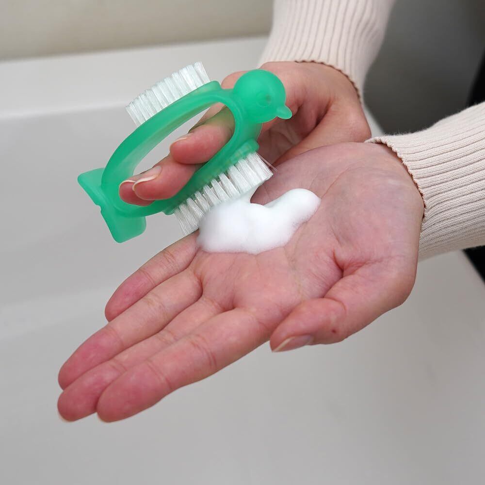 お子様がよろこんで手洗いできるようにペンギンの形をした爪・手洗い専用のブラシです。左右のブラシは爪・手洗い用と異なる硬さのブラシがついています。さあ、手洗いを楽しみましょう。