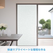 目隠し、プライバシー保護:外からの視線を遮りながら、かつ、充分に外の光を室内に取り込めます。カーテンを閉めているときの閉塞感や窮屈感あるの暗い部屋から解放されるでしょう。透明窓ガラスをすりガラス調に変身させるお手軽シートで、目隠し効果は高いです。