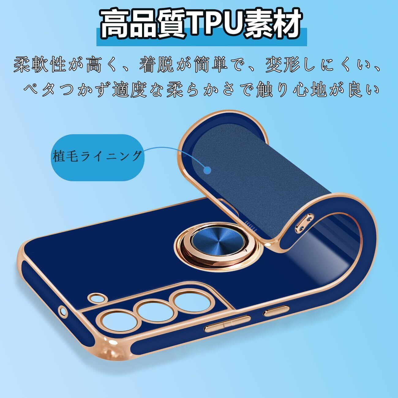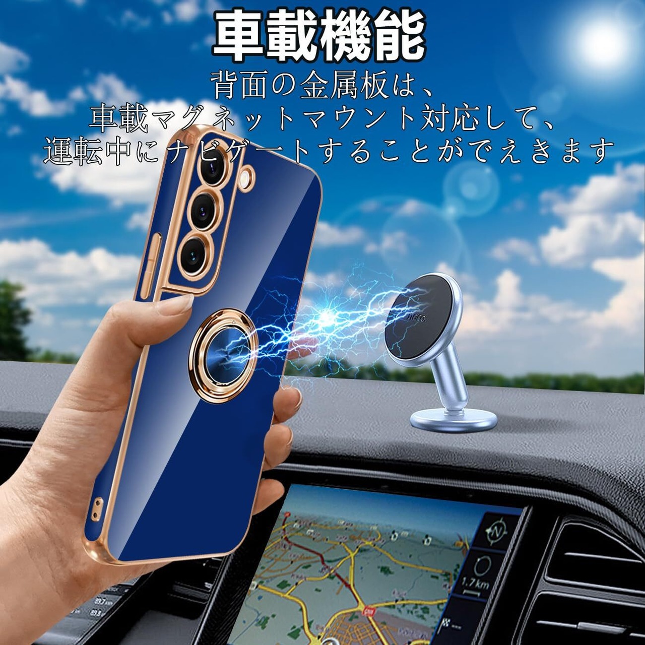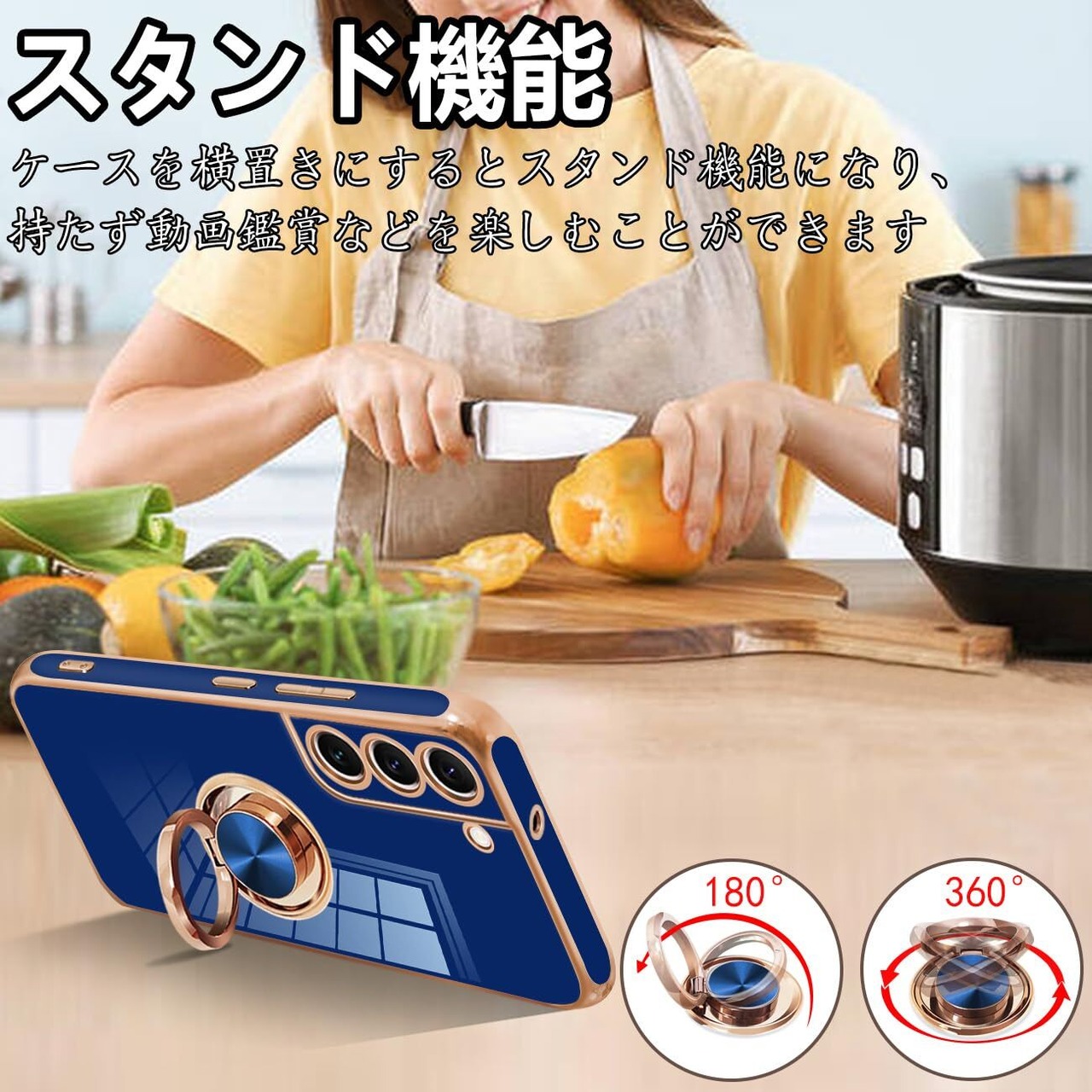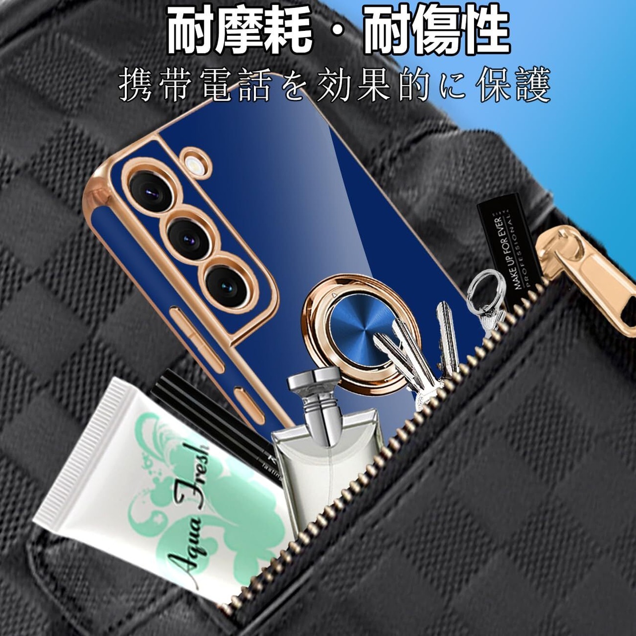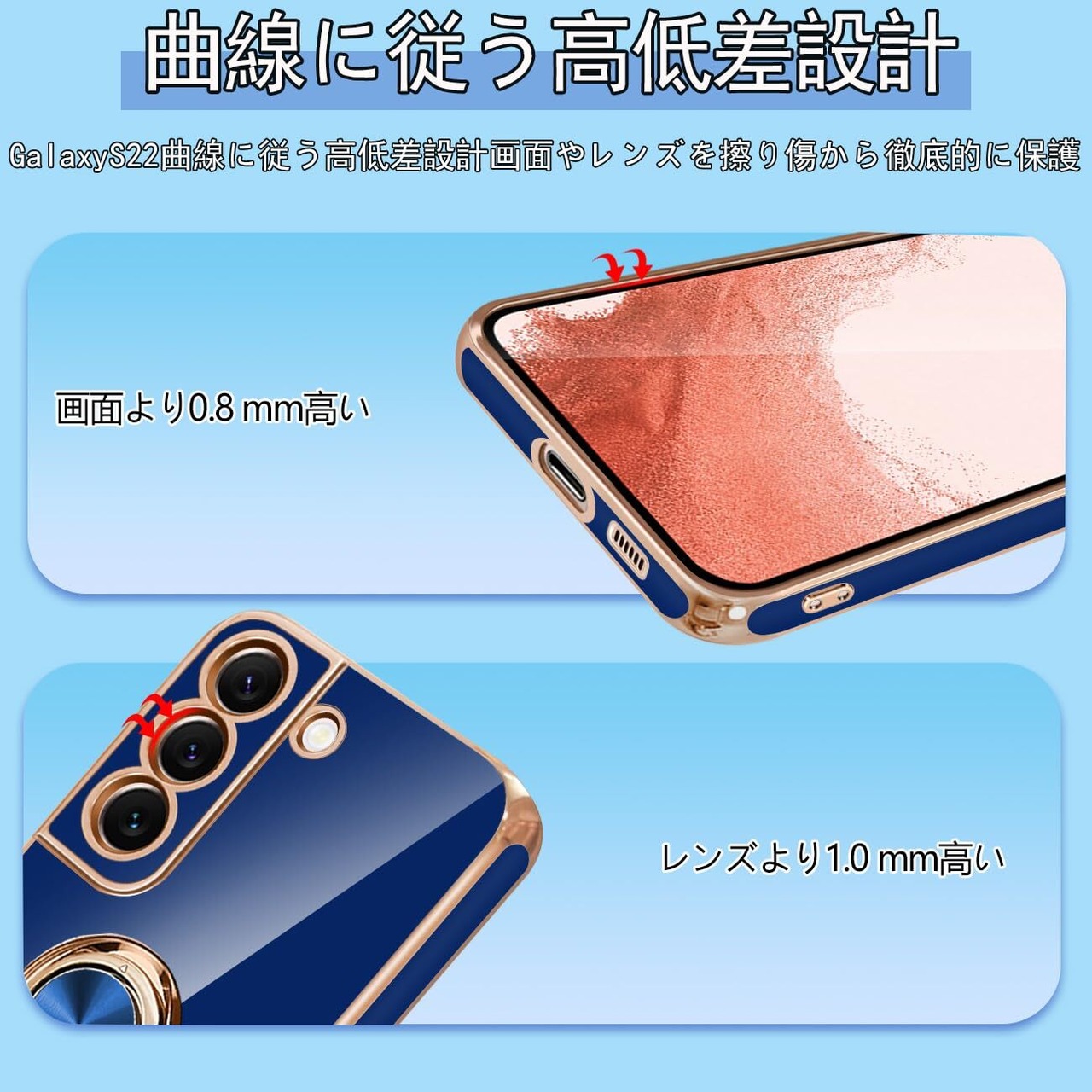 【FULEEYUHN】Galaxy S22 ケース リング付き 耐衝撃 軽量 SC-51C SCG13 対応 ギャラクシー S22 リング カバー TPU 保護カバー レンズ保護 スマホケース 衝撃吸収 360°回転 スタンド機能 車載ホルダー対応 ギャラクシー S22 携帯ケース(ブルー)