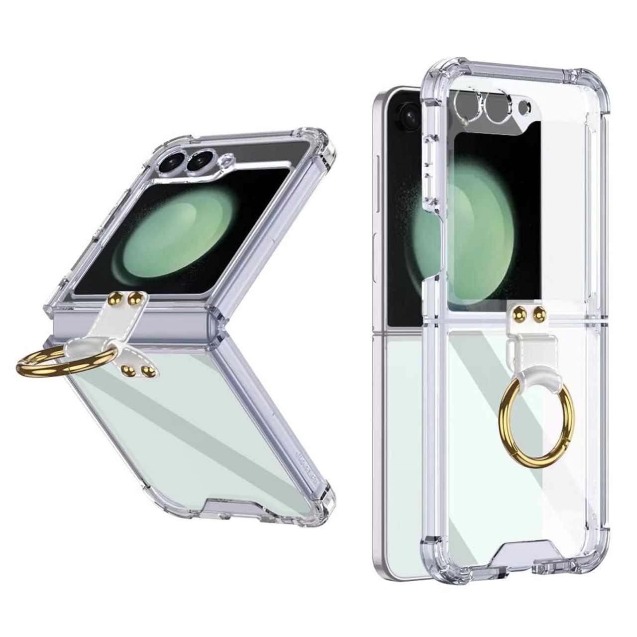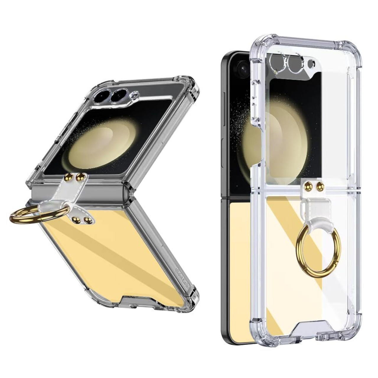 Galaxy Z Flip5 5G ケース クリア リング SC-54D SCG23 ケース スタンド機能 透明 TPU 薄型 軽量 耐衝撃 高級 人気 おしゃれ galaxy z flip5 5g ケース 着脱簡単 背面保護 全面保護 耐衝撃 カメラ保護 画面保護 傷防止 衝撃 吸収 男女兼用 ギャラクシー Z フリップ 5 タフ ケース (クリア)