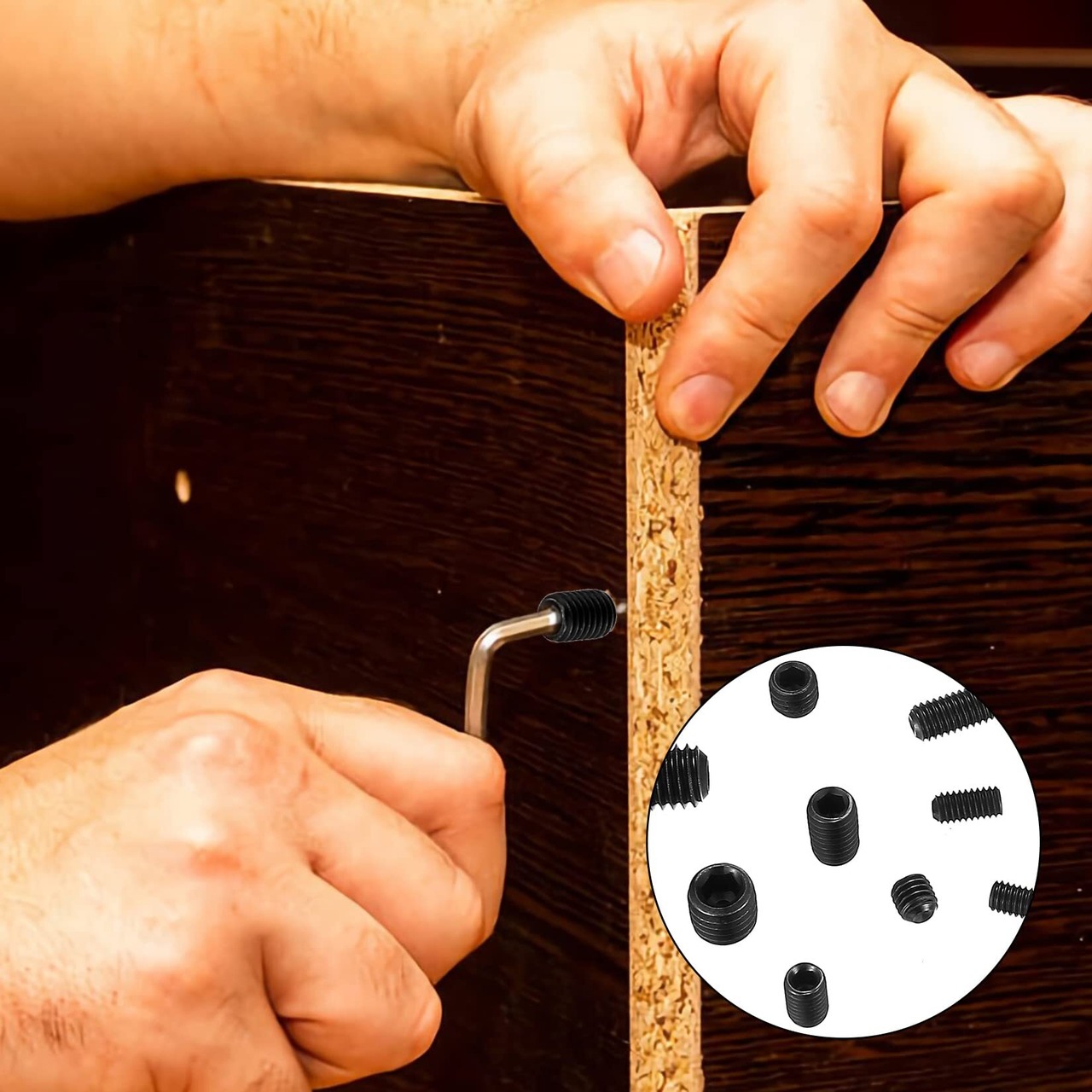 パッケージに含まれるもの:M3×3mm。 M3×4mm; M3×5mm; M4×4mm; M4×6mm; M5×5mm; M5×8mm; M6×6mm; M6×10mm; M8*8 mm、各サイズ30個、合計300個。サイズのアレンレンチ5個:M1.5;M2; M2.5; M3; M4.