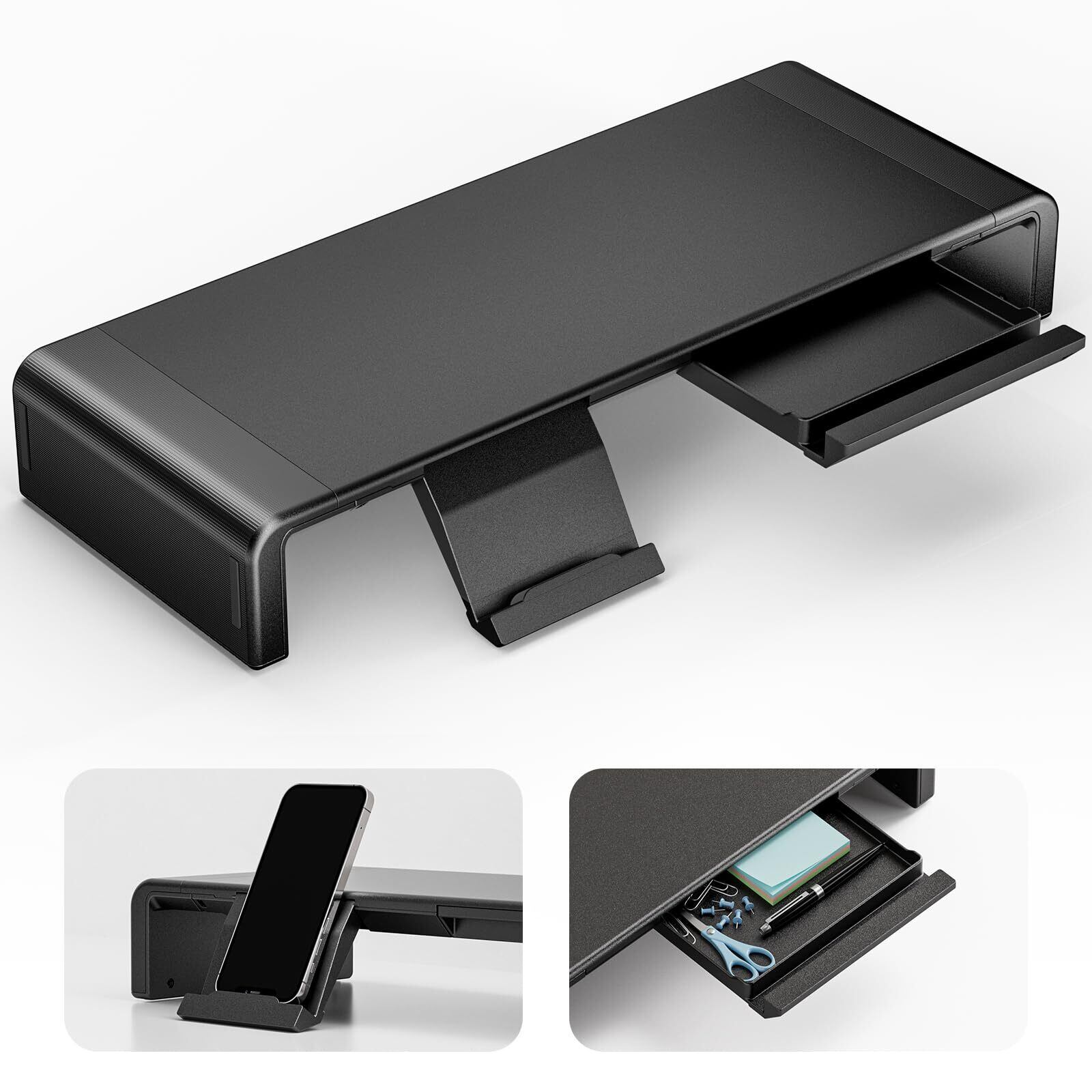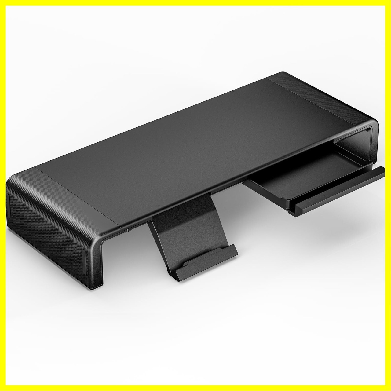 Klearlook モニター台 机上台 耐荷重50kg以内 折りたたみ式 三段階の幅調整可能 ノートパソコンスタンド モニタースタンド デスクスタンド キーボード収納 引き出し スマホ・タブレットトレー -ブラック