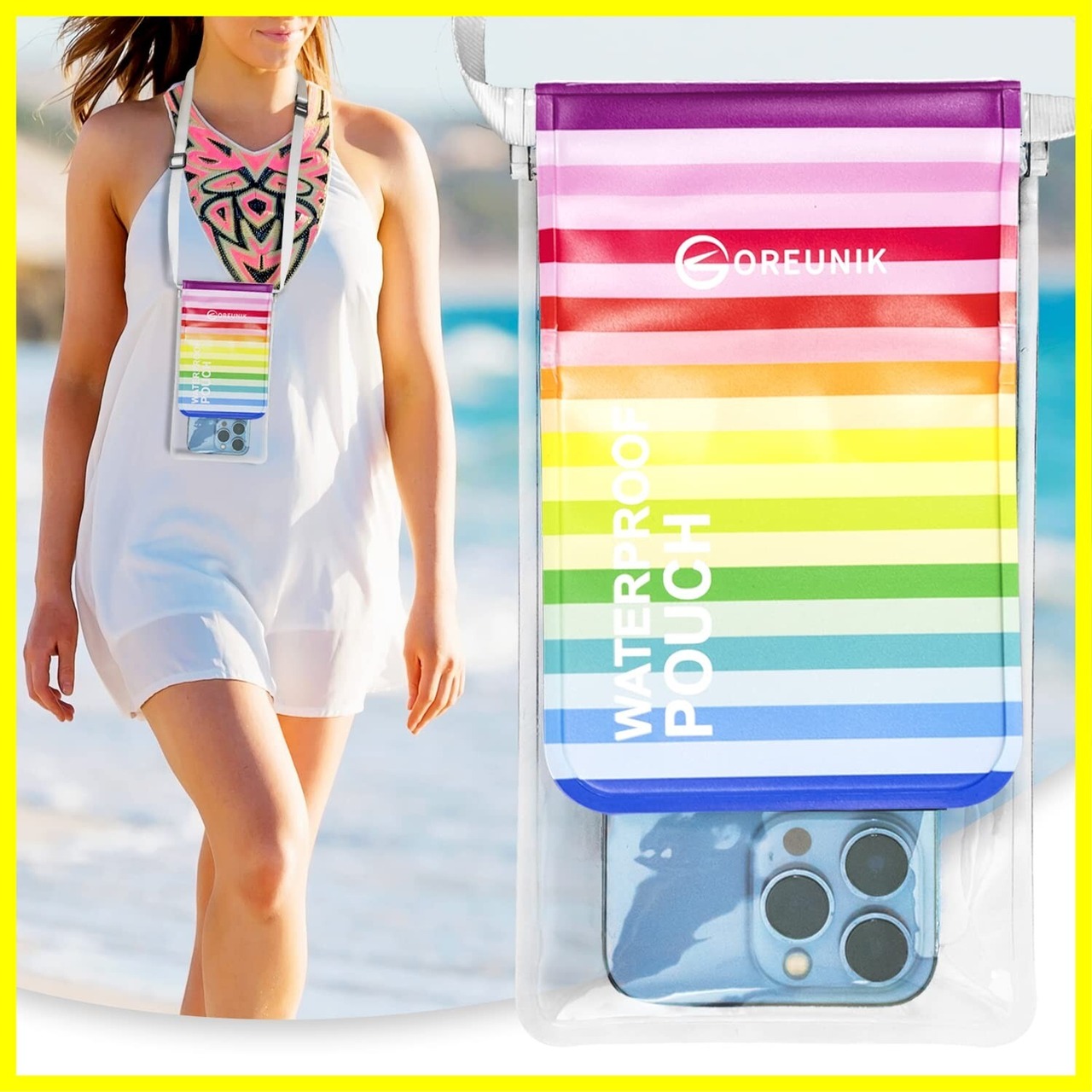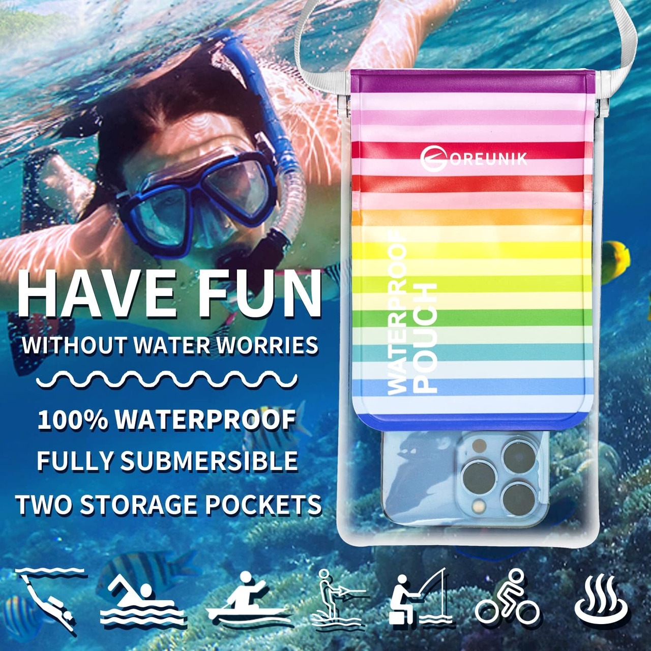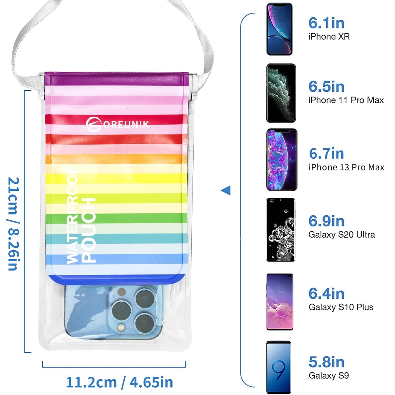 Oreunik防水電話バッグ, iPhone 15 14 13 12 Pro Max Samsung Galaxy s11/s10/s9 用防水ケース,スクリーンタッチセンシティブ,2層のデザインポケット,IPX8携帯電話ドライバッグ (Rainbow)