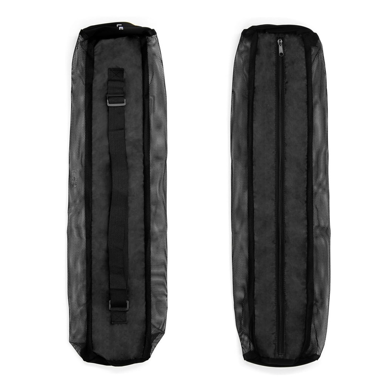 ブラックカラーのシンプルなデザインは、性別や年齢を問わず使いやすく、インテリアにもなじみやすい印象。ヨガマットがメッシュからちらっと見えるのもおしゃれなポイント。ケース単体での販売です。
