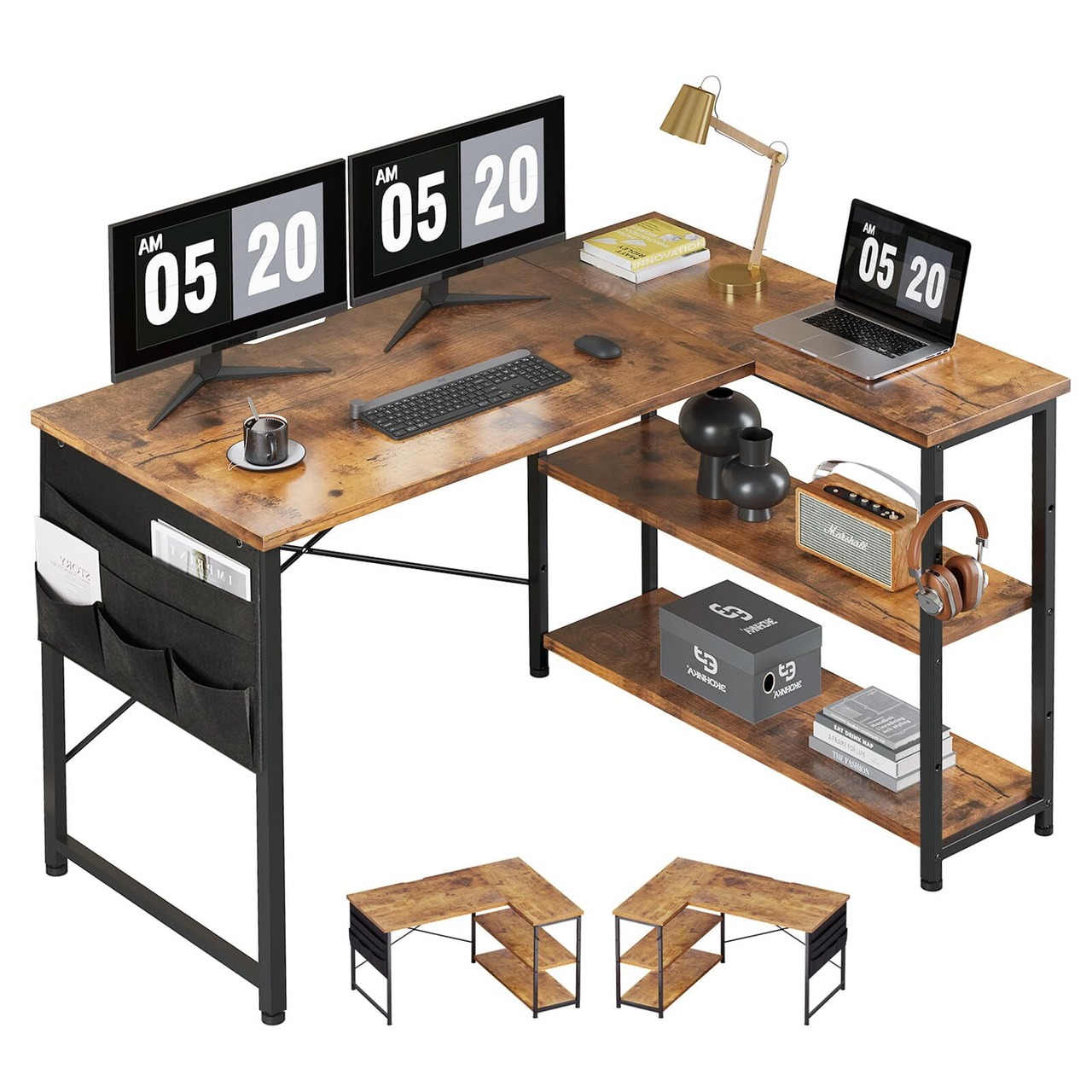 YeTom パソコンデスク 机 学習机 右棚左棚 幅107cm ゲーミングデスク l字デスク pcデスク 収納袋付き勉強机 コーナーデスク 本棚付き ビンテージ