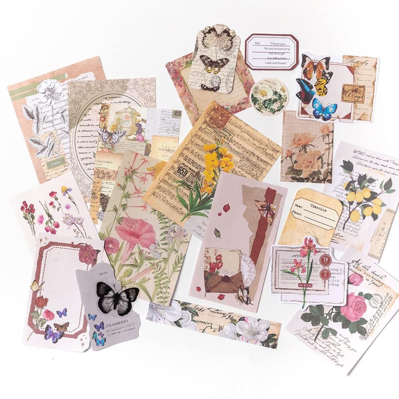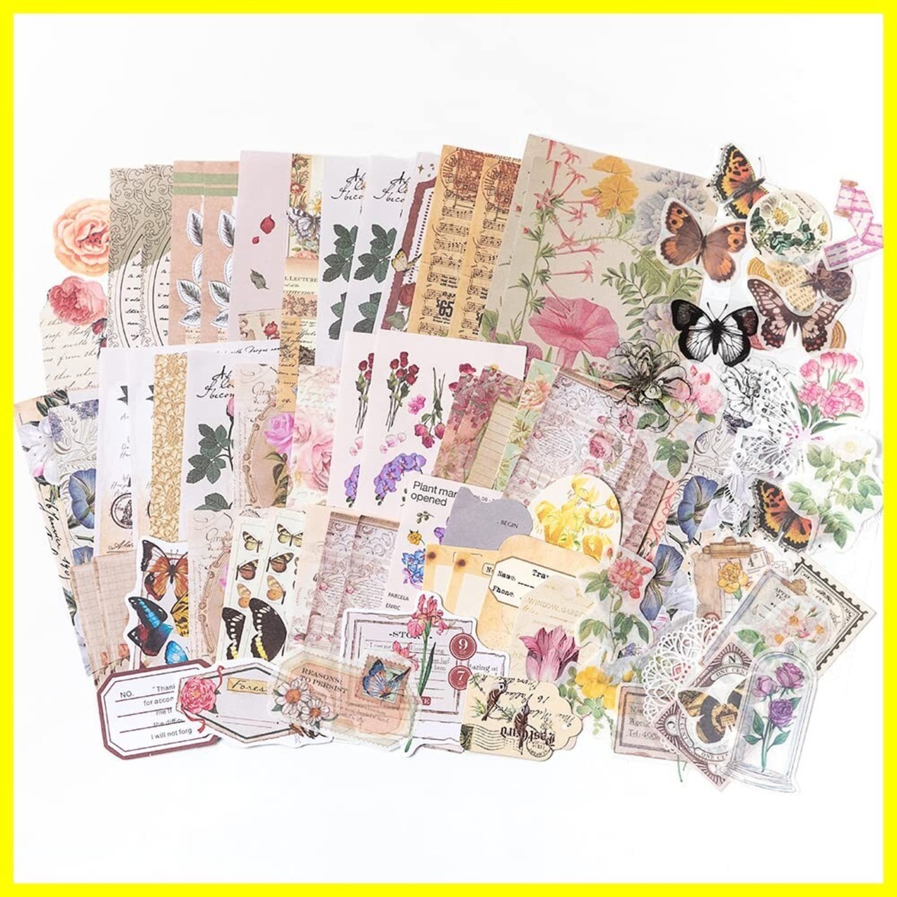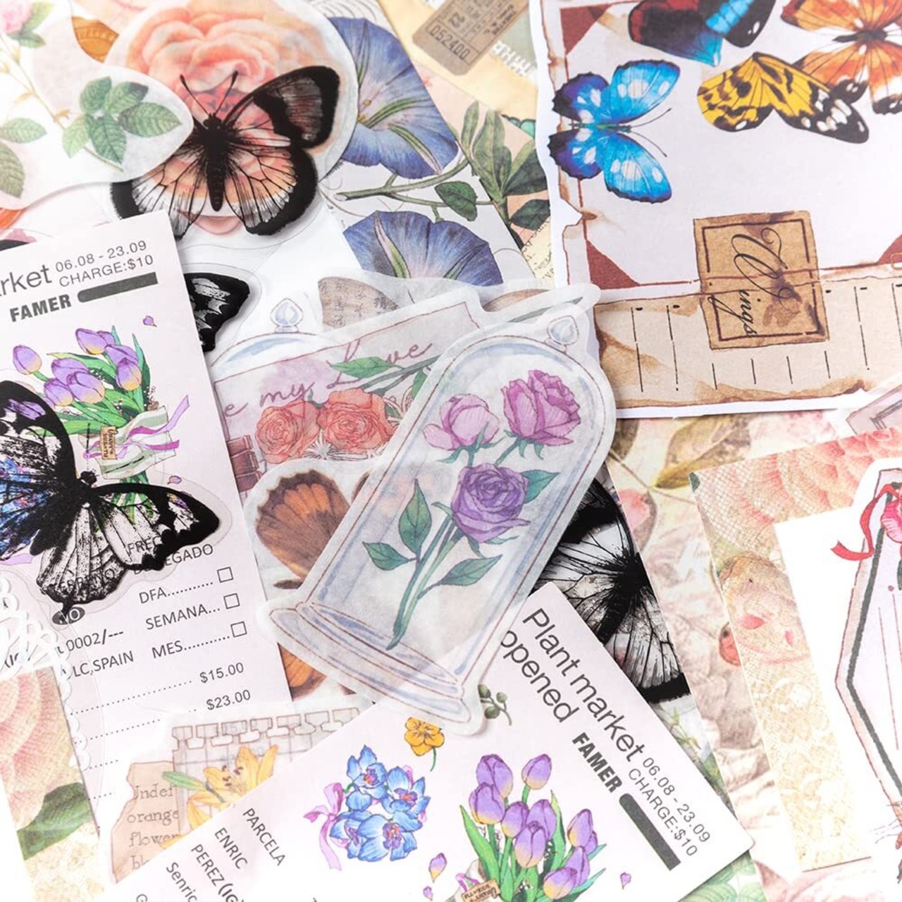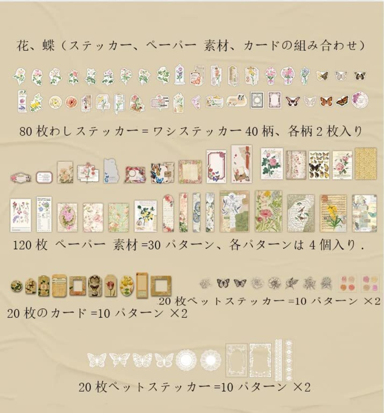 260枚 ブランド フレークステッカー シール コラージュ 素材 ペーパー 素材紙 かわいい おしゃれ レトロ 花 蝴蝶 フラワーバタフライ レディ韓国 シール帳 ,メモ用紙ノート素材、日記装飾用品 (hualuokongshan)