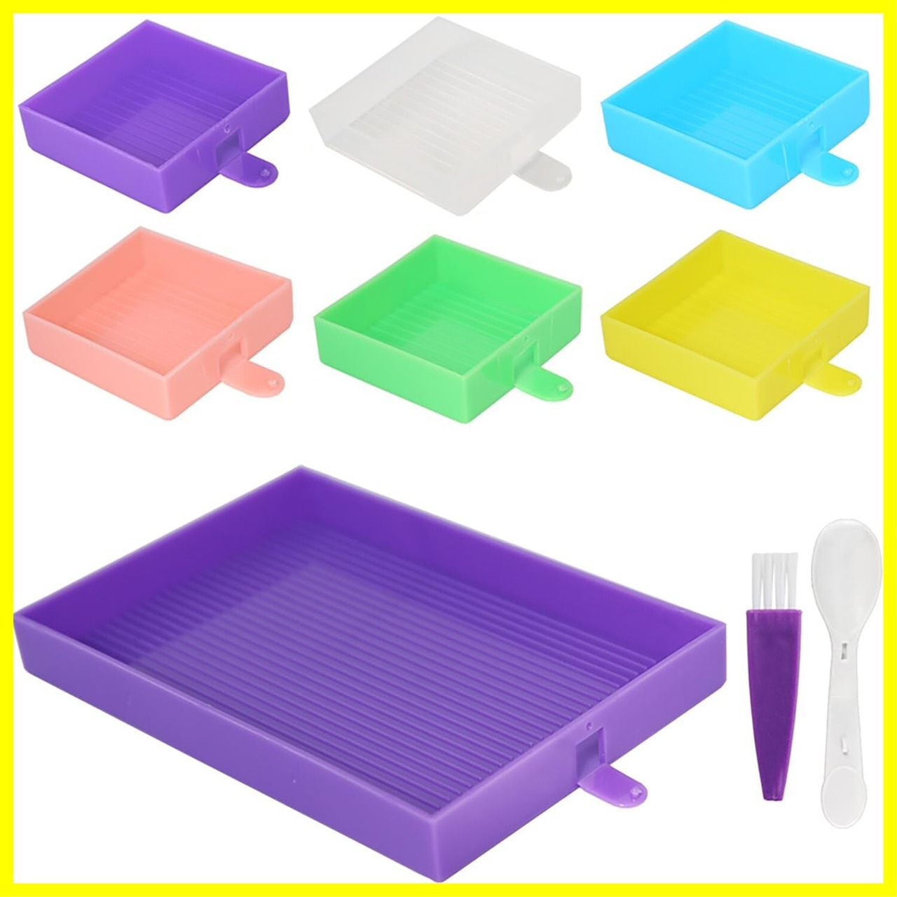 小さなダイヤモンド・トレイは白、黄、緑、オレンジ、青、紫の6色、大きなダイヤモンド・トレイは紫である。