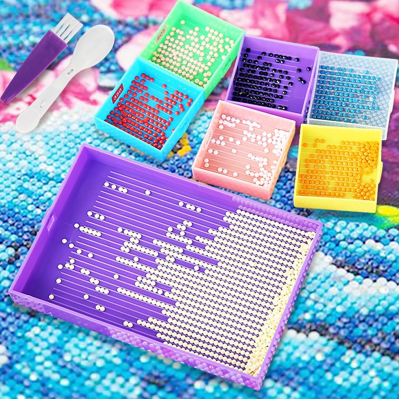 【効果的な組織と分類】6つの小さなトレイは6色で構成されており、仕分け作業に効果的に使用できます。ダイヤモンドペインターのサイズや人数に合わせて、6つの小型トレイを用意している。