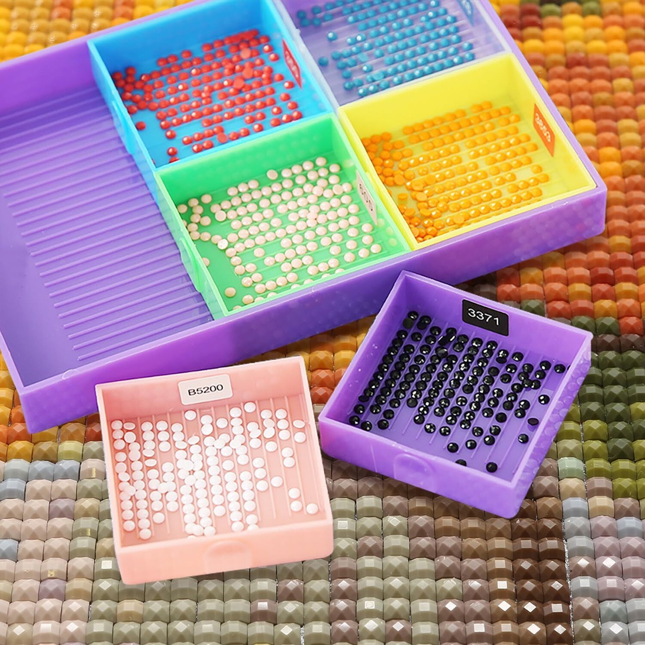 【複数のタイプに対応】トレイのサイズと数は、より多くの種類のダイヤモンドに適している。その他、ビーズや装飾パーツなど。このトレイはダイヤモンドペイントと他の工芸品の両方に使用できます。
