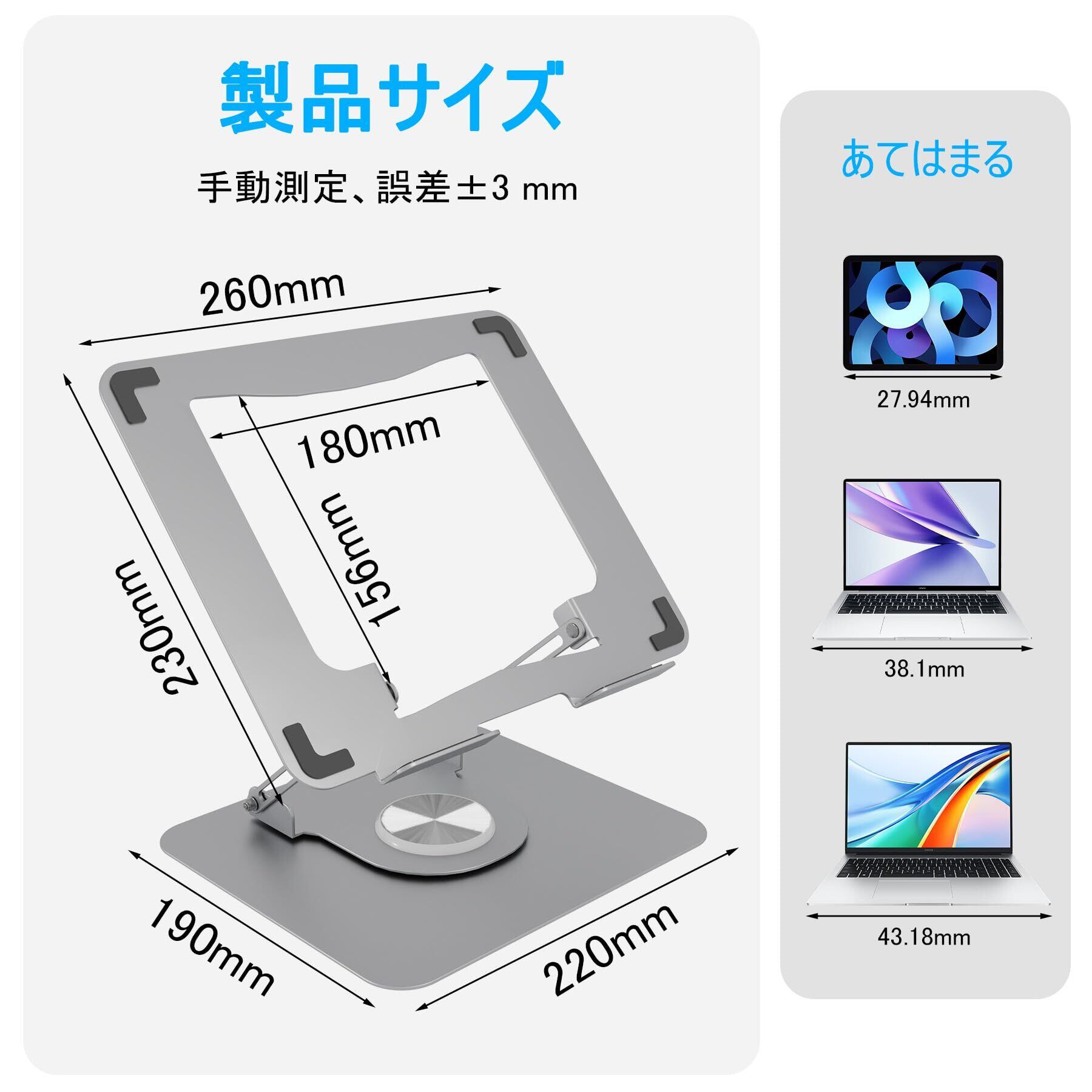 【人間工学に基づいた設計】自分の身長とデスクトップの高さに合わせて、ノートパソコンスタンドの高さを簡単に調整して、最も快適な使用状態にすることができます。このスタンドは0 ~ 180度の自由な調節をサポートし、底部は360°回転することができ、異なる使用シーンでのニーズに対応しています。適切な角度を調整することで、首や肩の疲れを軽減し、猫背を改善し、作業効率と快適さを高めることができます。